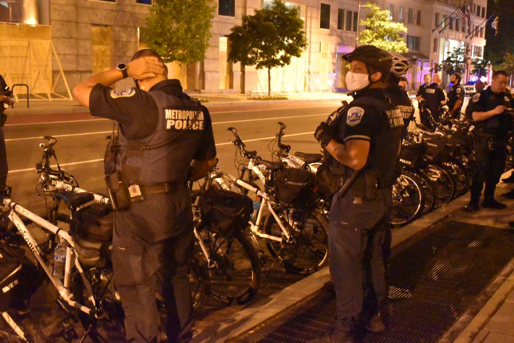 “It’s been getting more and more peaceful,” Mimi, a Ward 7 resident, told DCist as the sun began to set on the swelling crowd on Wednesday night. “Monday, you know, they threw tear gas at, you know, peaceful protesters. Since then, I think the crowd has really made it a point to be peaceful.”