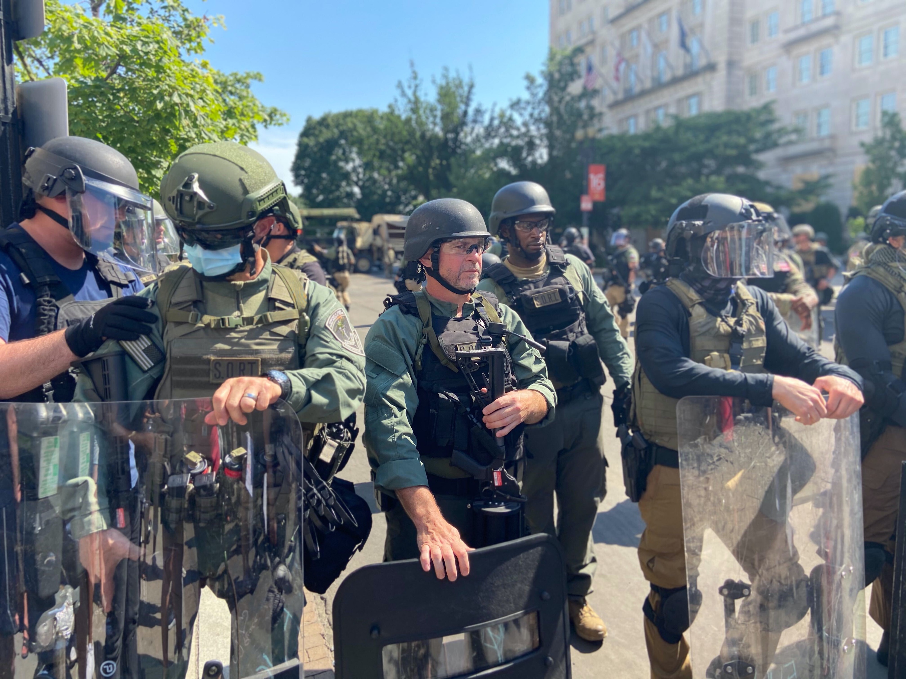 There has been an escalating federal law enforcement presence in D.C. over the past several days, including National Guard, DEA agents, and guards from the Federal Bureau of Prisons. Some federal law enforcement officers present in the District declined to identify themselves or their agency when asked by reporters on Wednesday.