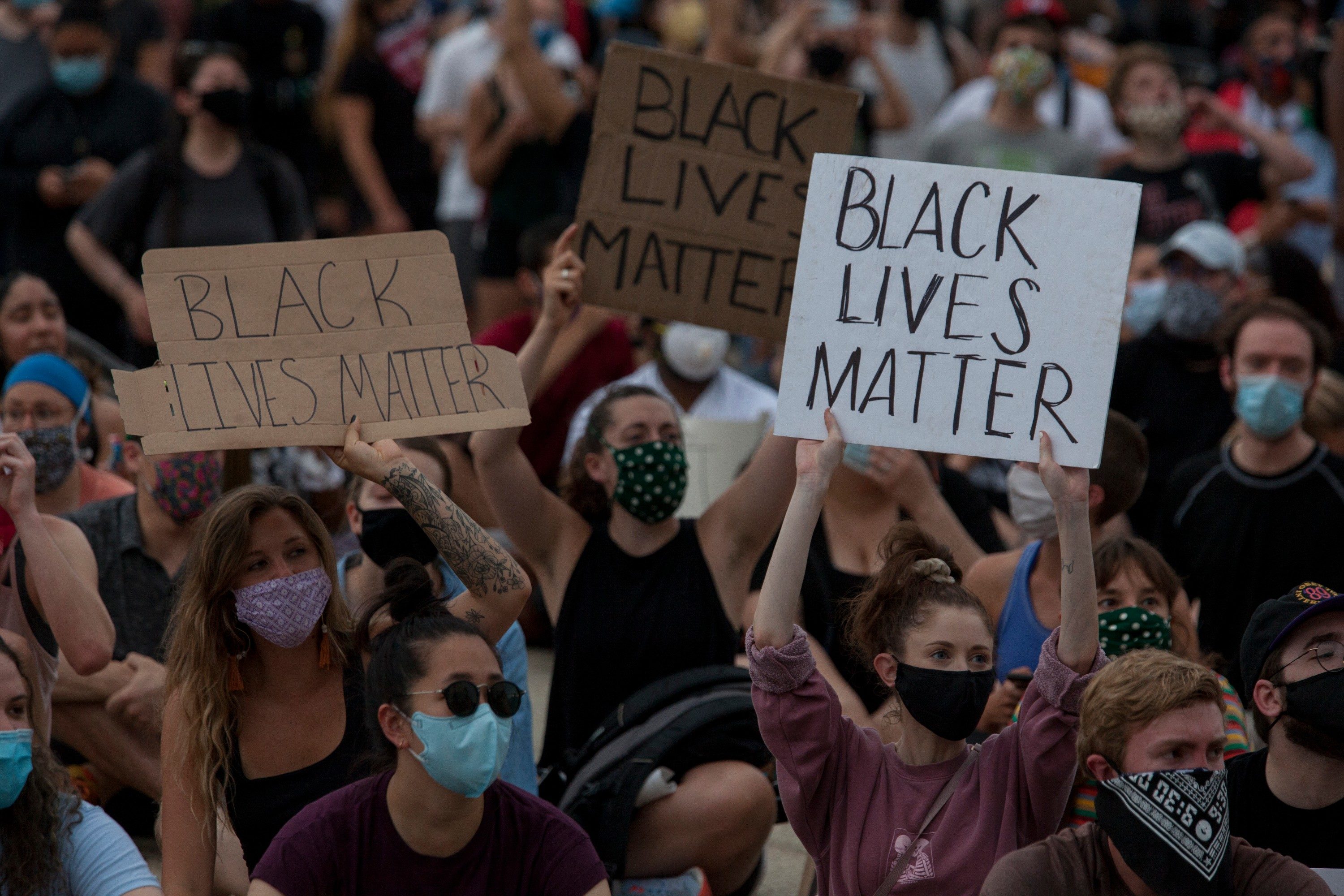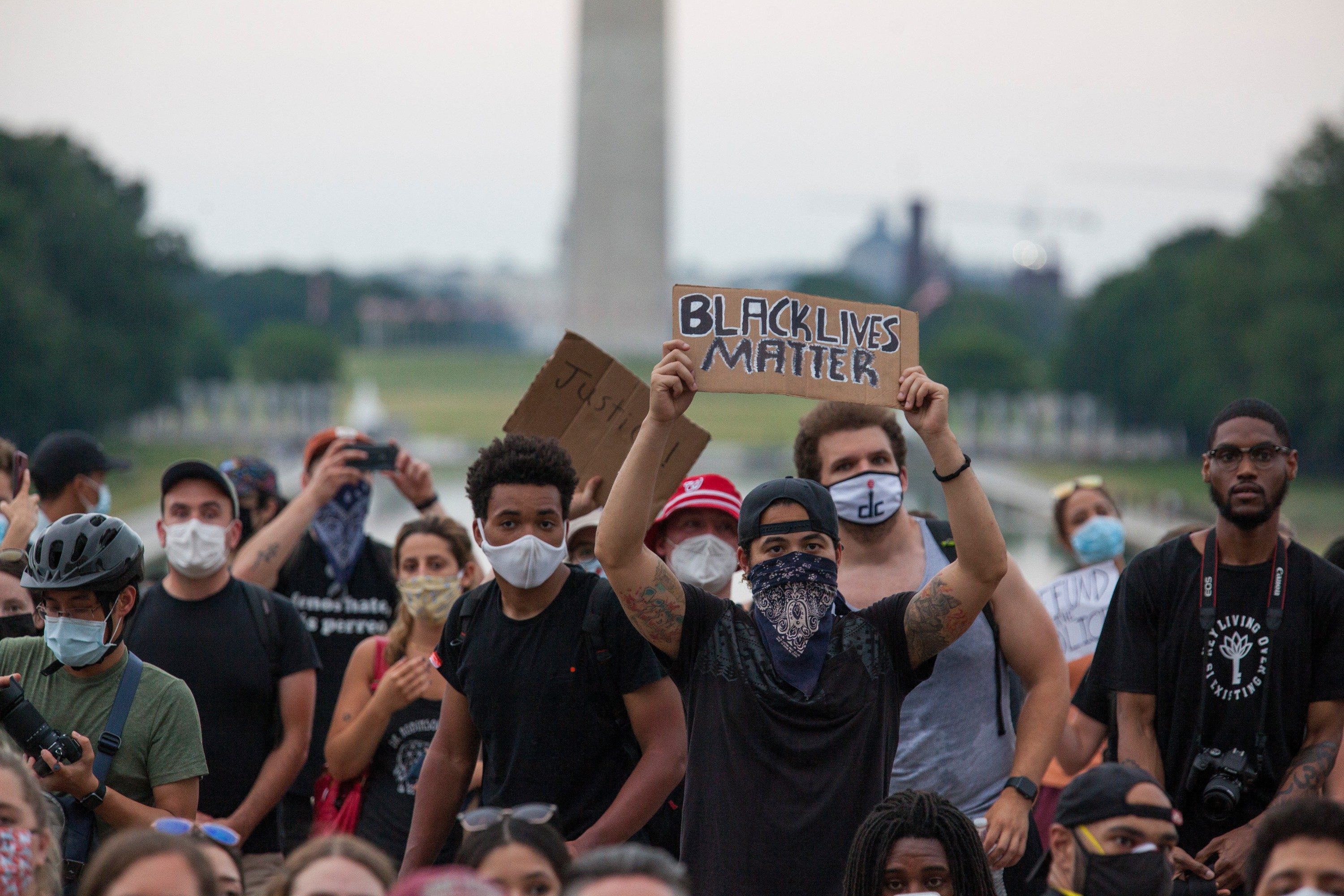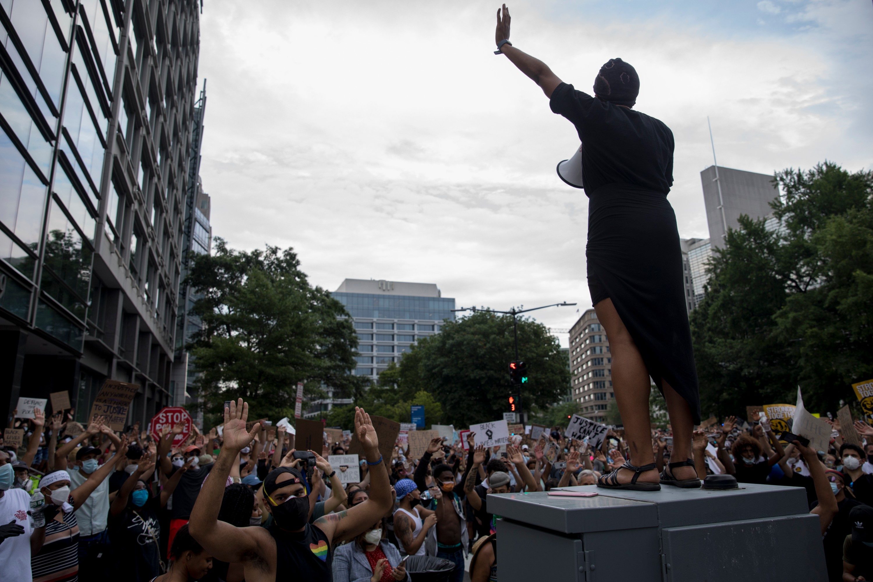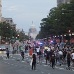 Demonstrators spilled from those steps to the National Mall until around 8 p.m., when rain and lightning dispersed some demonstrators. But others remained. At one point, a group of protesters visited the Martin Luther King Jr. Memorial, where they listened to the civil rights leader’s “I have a dream” speech over a loudspeaker.