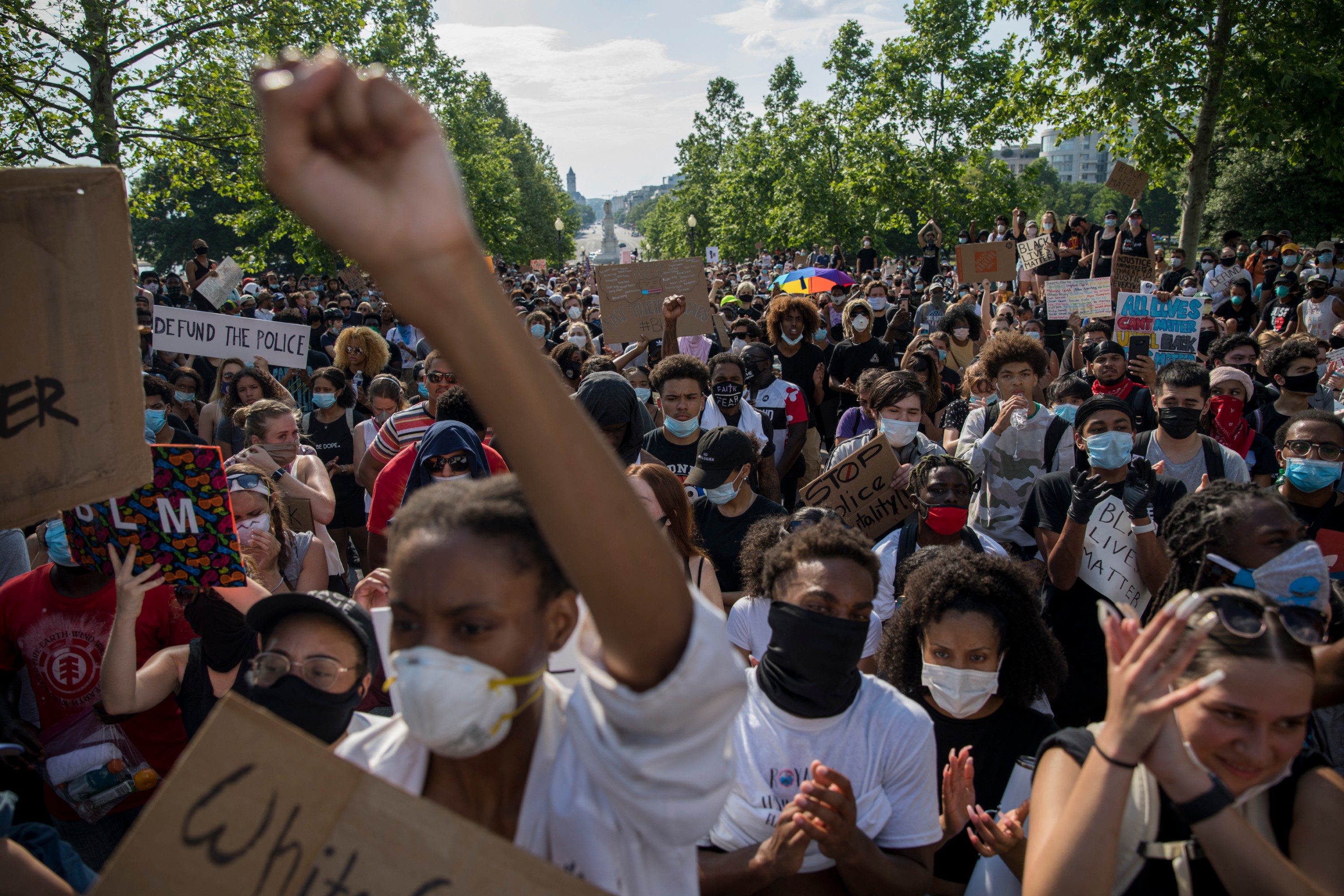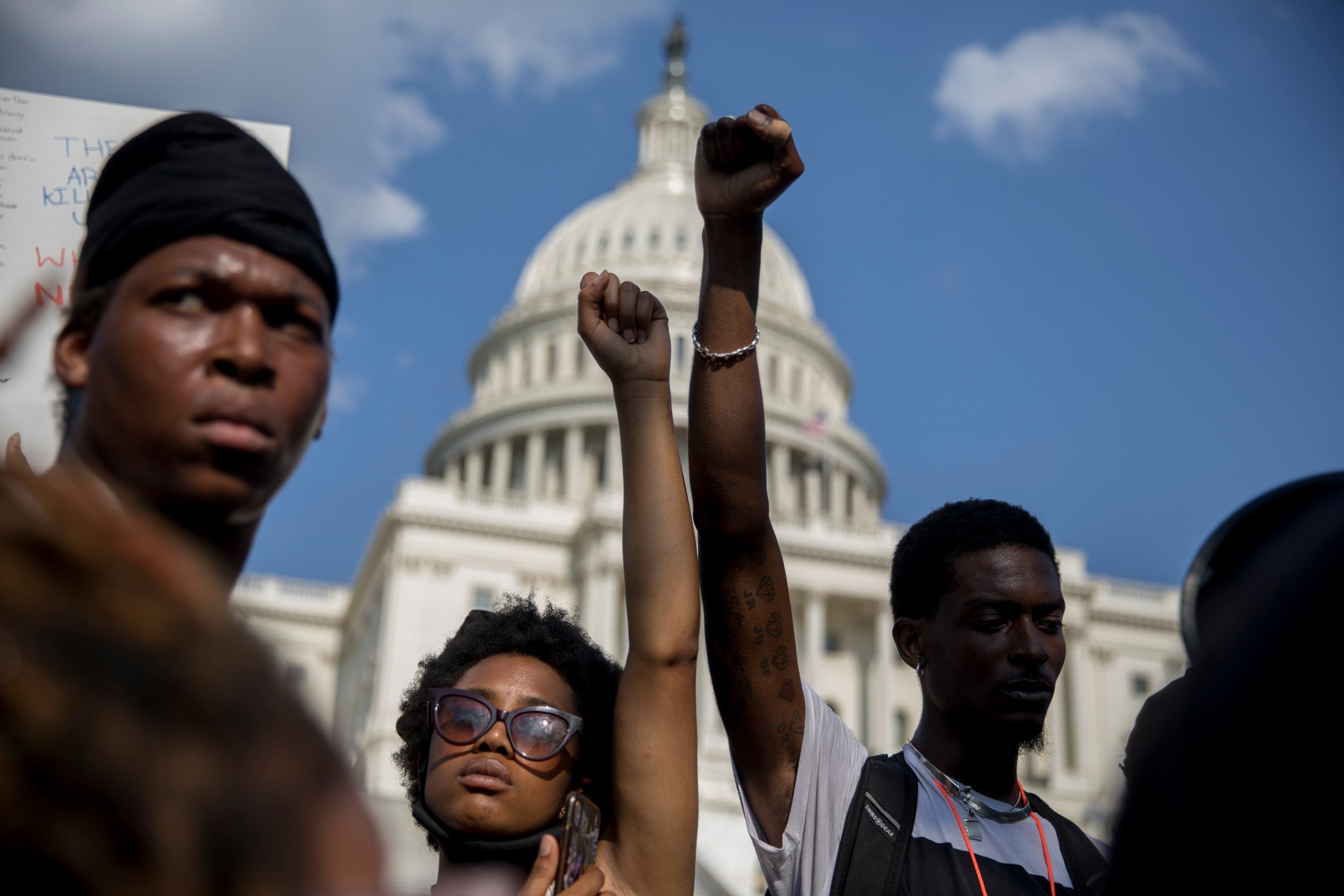 Attallah Hampton attended the protest near the White House with two of her sons, Andre, 8, and Austen, 4. She said she wanted her sons to witness the show of support for black people.