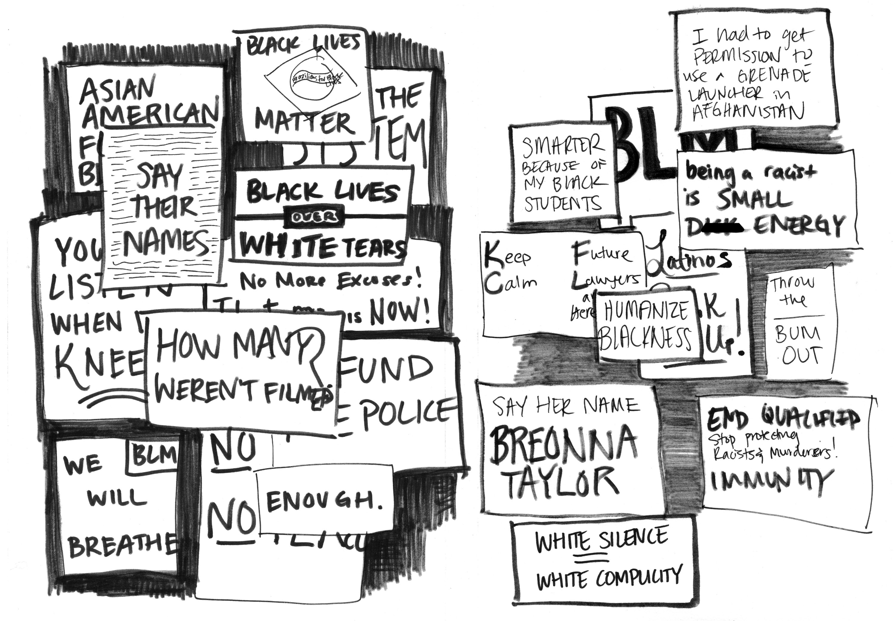 “This is an opportunity to participate in something publicly over something I’ve felt privately my whole life,” she said, holding a “Black Lives Matter” sign she made out of a file folder.