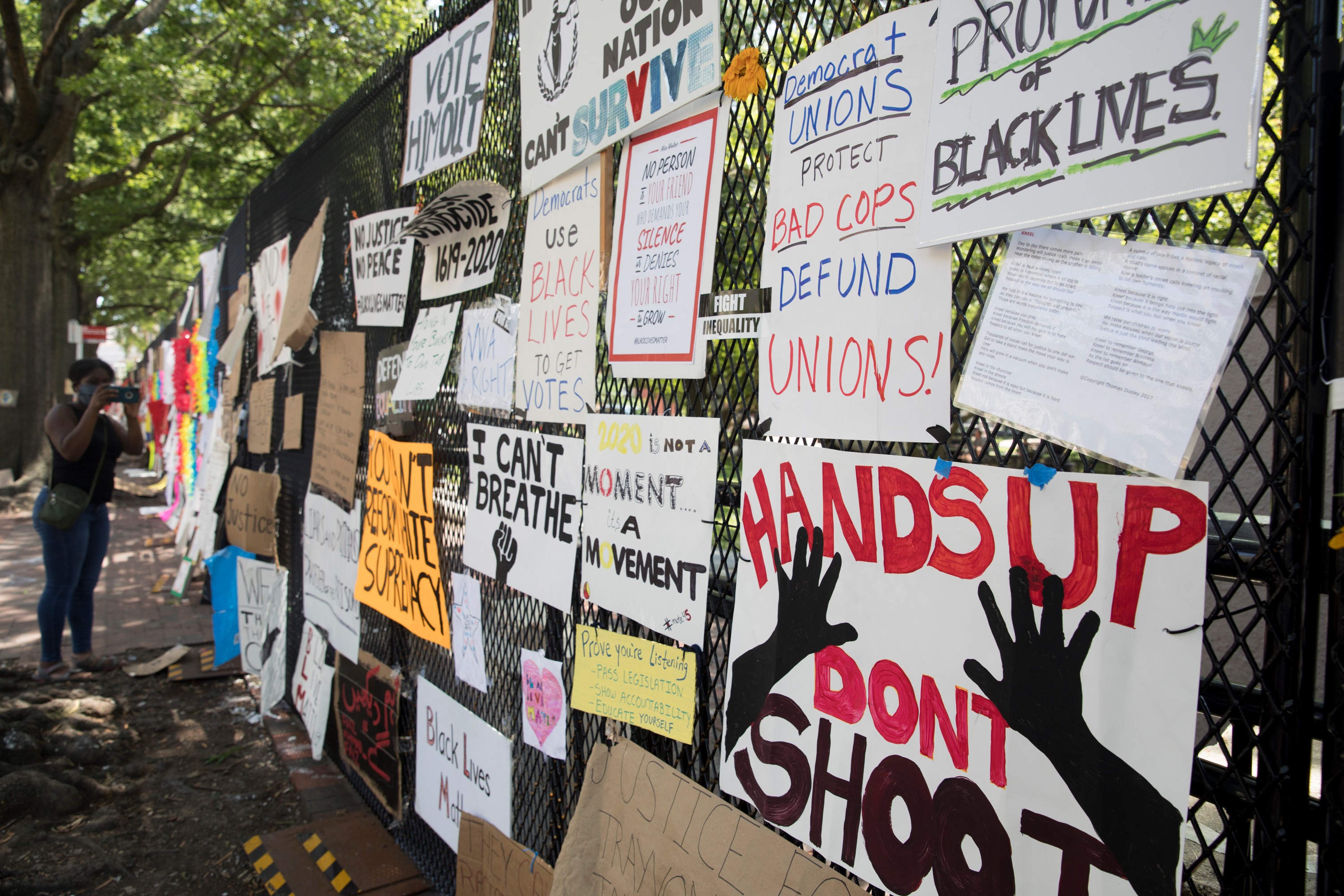 The barriers have been a jarring sight for many Washingtonians, long used to free access to spaces that serve as a symbol of democracy and where First Amendment protests have played out for over a century. Throughout the week, protesters could often be heard pressed up against the fence, chanting “This is what democracy looks like.”