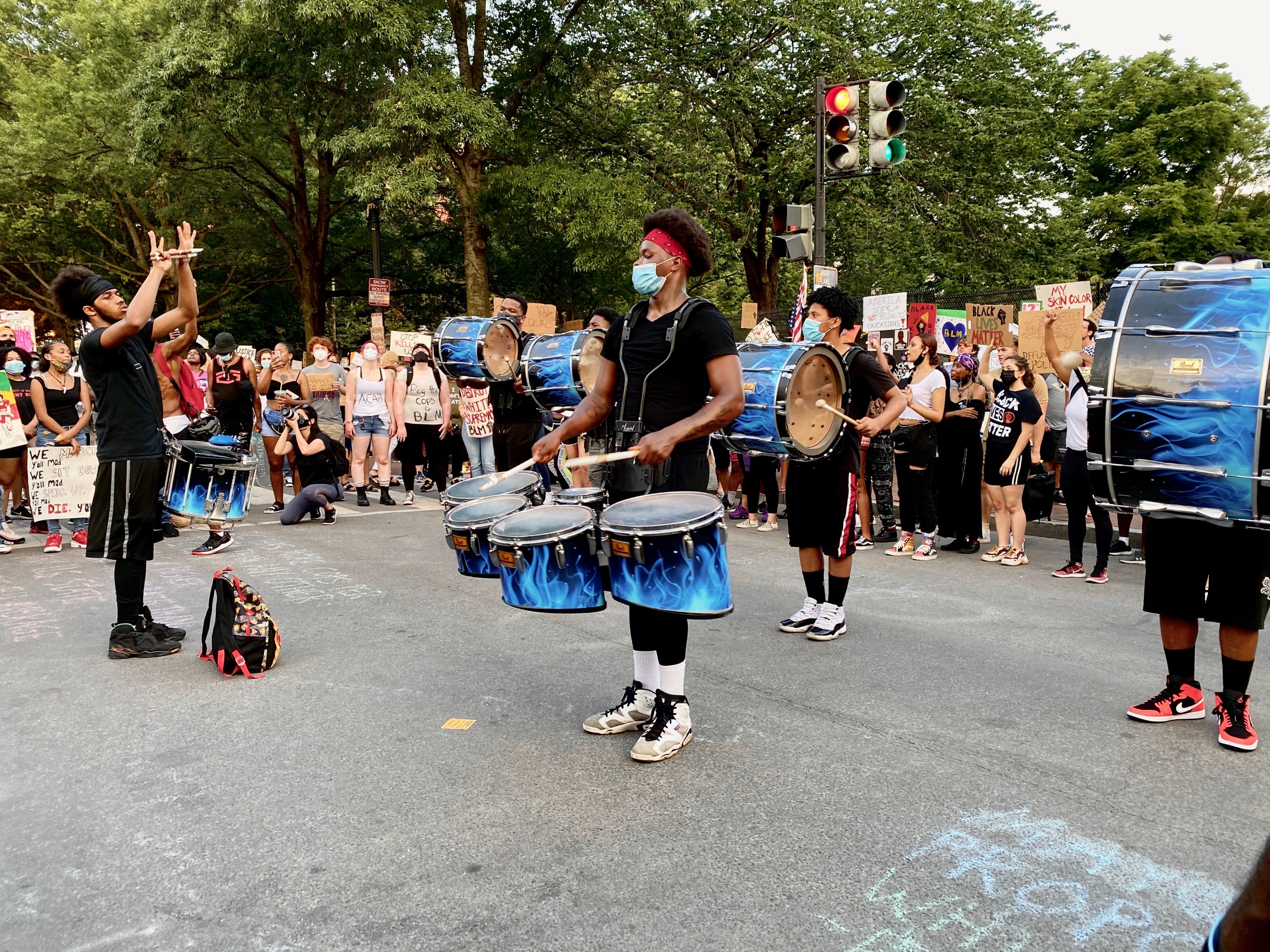 The twelfth day of protests in D.C. was slow. There weren’t many sustained chants for the most part, and only a couple of marches came through. But Black Lives Matter Plaza was still blocked off by law enforcement, and hundreds of protesters came in and out throughout the day. This section of 16th Street, it seems, is turning into a home base, for now, a place where protesters can eat and sing and drum and dance.