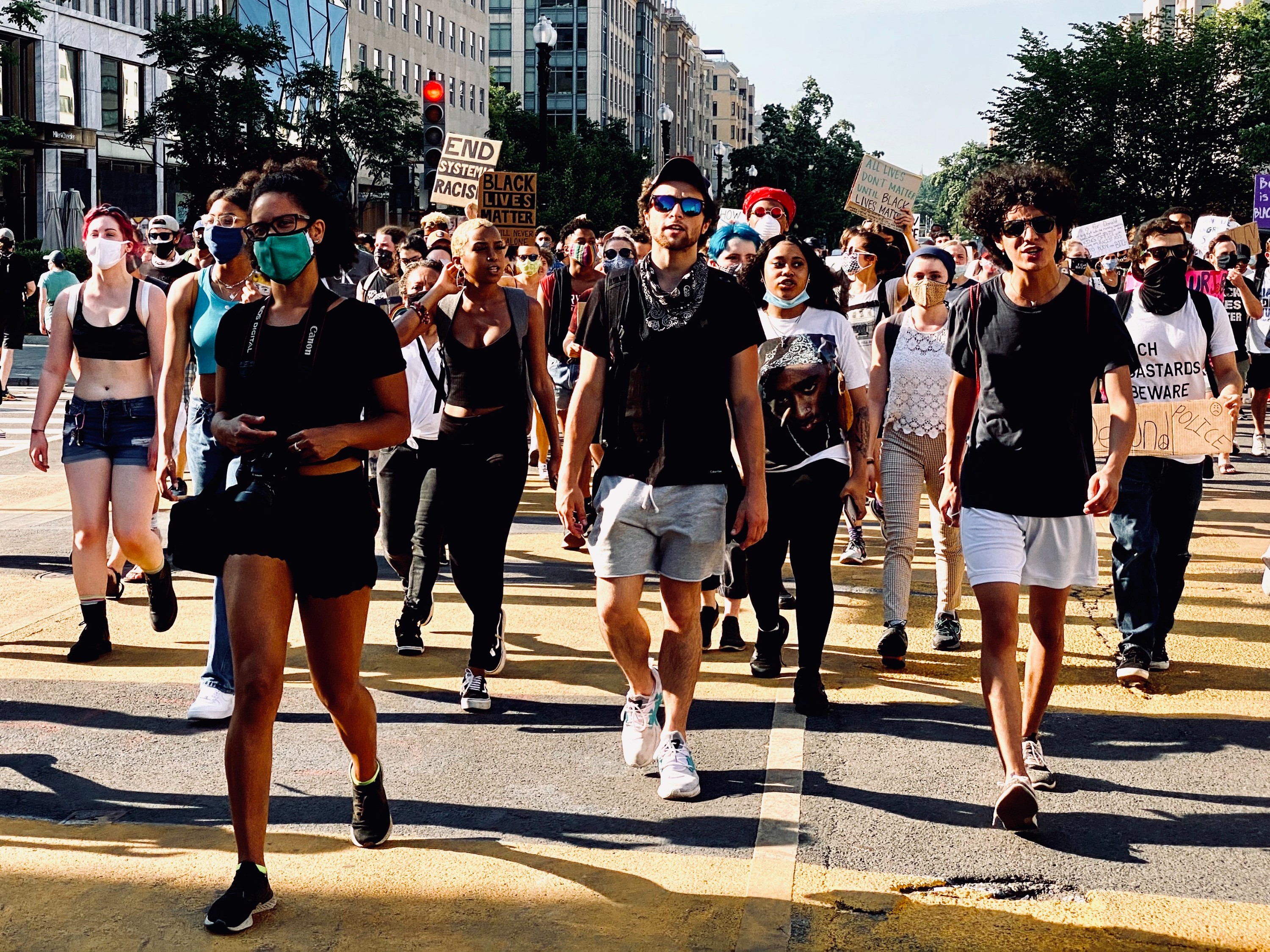 People spent the day taking photos by the new Black Lives Matter Plaza sign, taking in the protest art on the fence blocking off Lafayette Square, and listening to music. A couple of marches came down 16th Street NW and dissipated once they reached H Street NW.