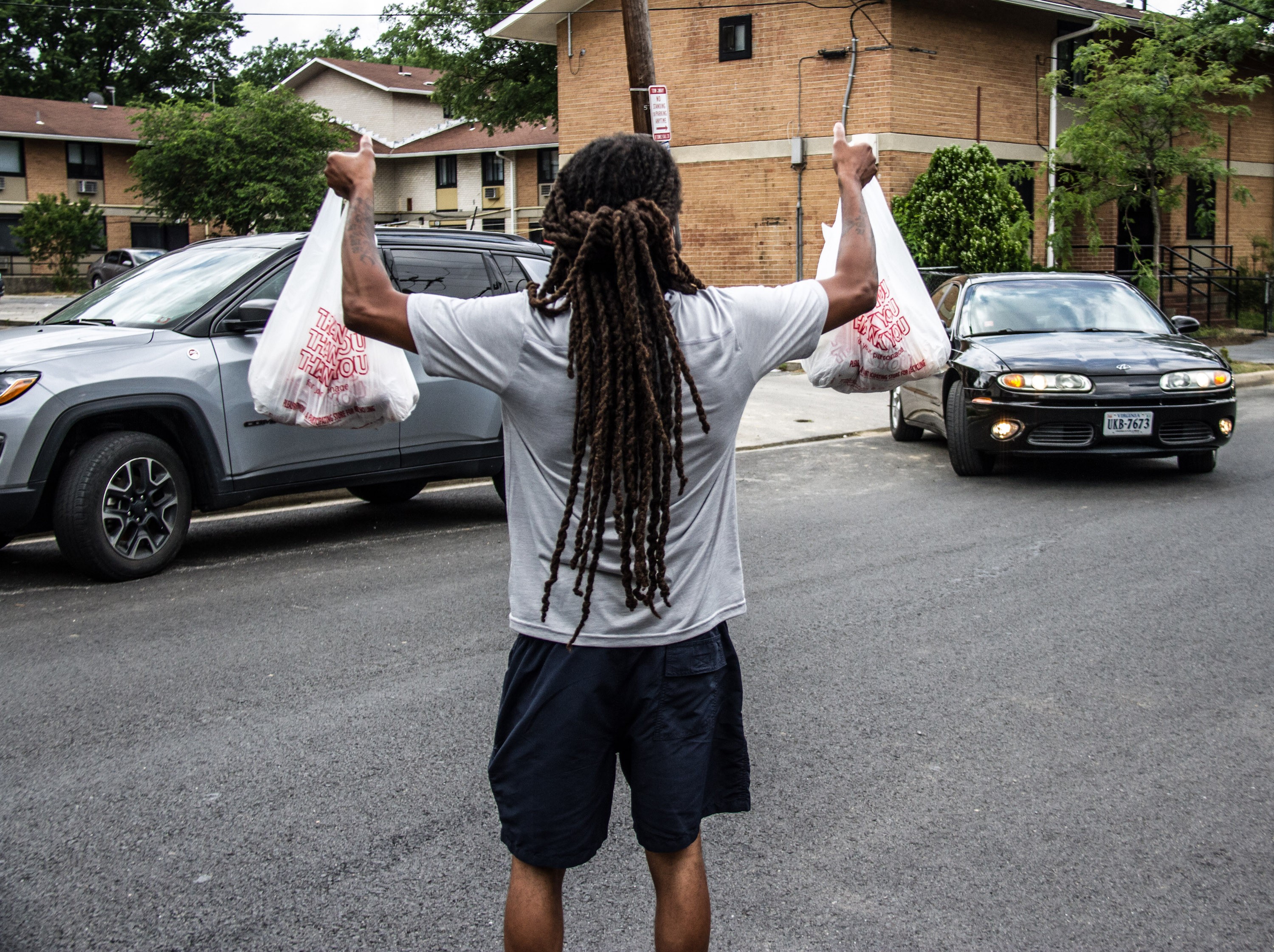 On June 10, when Martha’s Table vans pulled up at the W Street SE drop-off location, Houston and Charles Gussom Jr., the assistant director of community development at Martha’s Table, opened the back door to the truck, grabbed a few bags and held them in the air as vehicles passed. “Free groceries, grab-and-go,” Gussom announced.