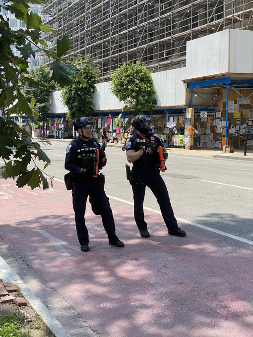 MPD did not immediately respond to DCist’s request for comment on alleged police use of chemical irritants or riot gear on Monday.