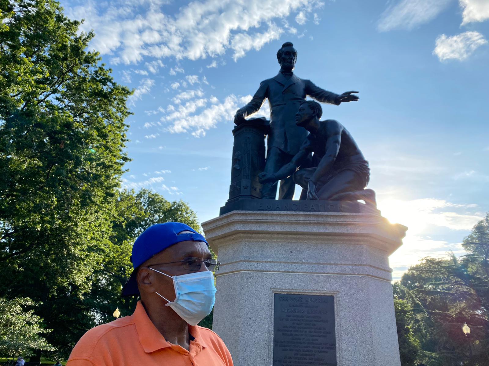 “I would just like a peaceful outcome and to have the discussion,” Hatfield, a white woman, told DCist/WAMU. “It’s good to raise awareness, but this is a federal park and the way to do it is to write to Congress and get them to change their mind. I mean, it is possible to move it. We just had it cleaned. Maybe it could go to Lincoln’s Cottage or something. I don’t think it should be done by mob mentality.”
