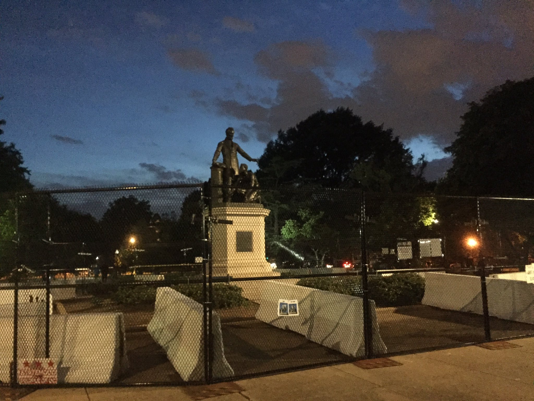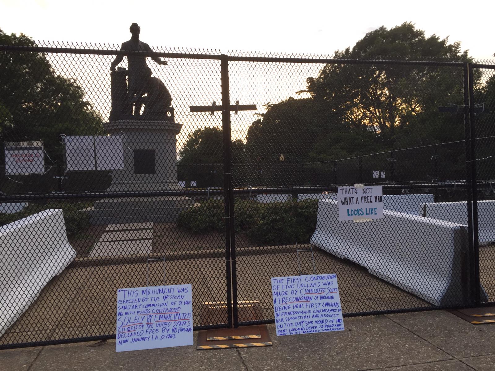 Workers with National Park Services installed concrete barriers and tall black fencing around the Emancipation and Mary McLeod Bethune memorials shortly after in anticipation of Friday’s protests, according to the Hill Rag. (The latter is the first statue of an African American or a woman erected on public park land in D.C.) The fencing is scheduled to come down on July 31.