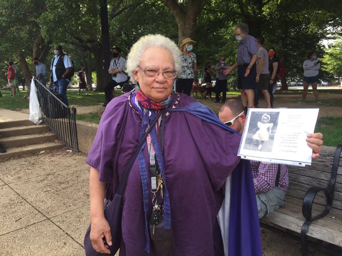 Outside of the tense discussions in front of the statue, Carolivia Herron, a classics professor at Howard University, said she wants to see the statue stay in the park — it’s where she took her first steps as a toddler 73 years ago. She’s among the group of historians and reenactors who took part in Friday’s demonstrations, though she didn’t do any reenacting herself.
