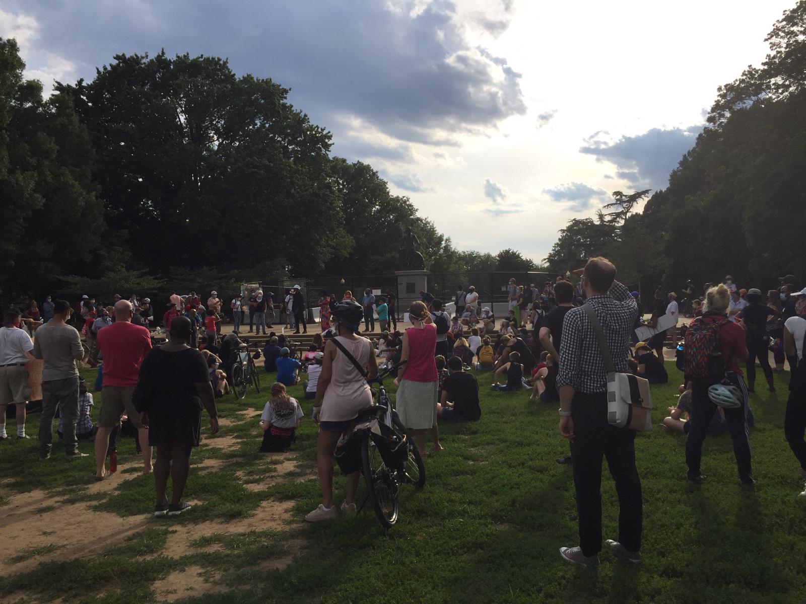 “I’m all for the statue coming down in the right manner,” Mingo said. Speaking to the crowd, he advocated for a shift in focus: from Lincoln Park to Capitol Hill, where he said activists could push for real change.