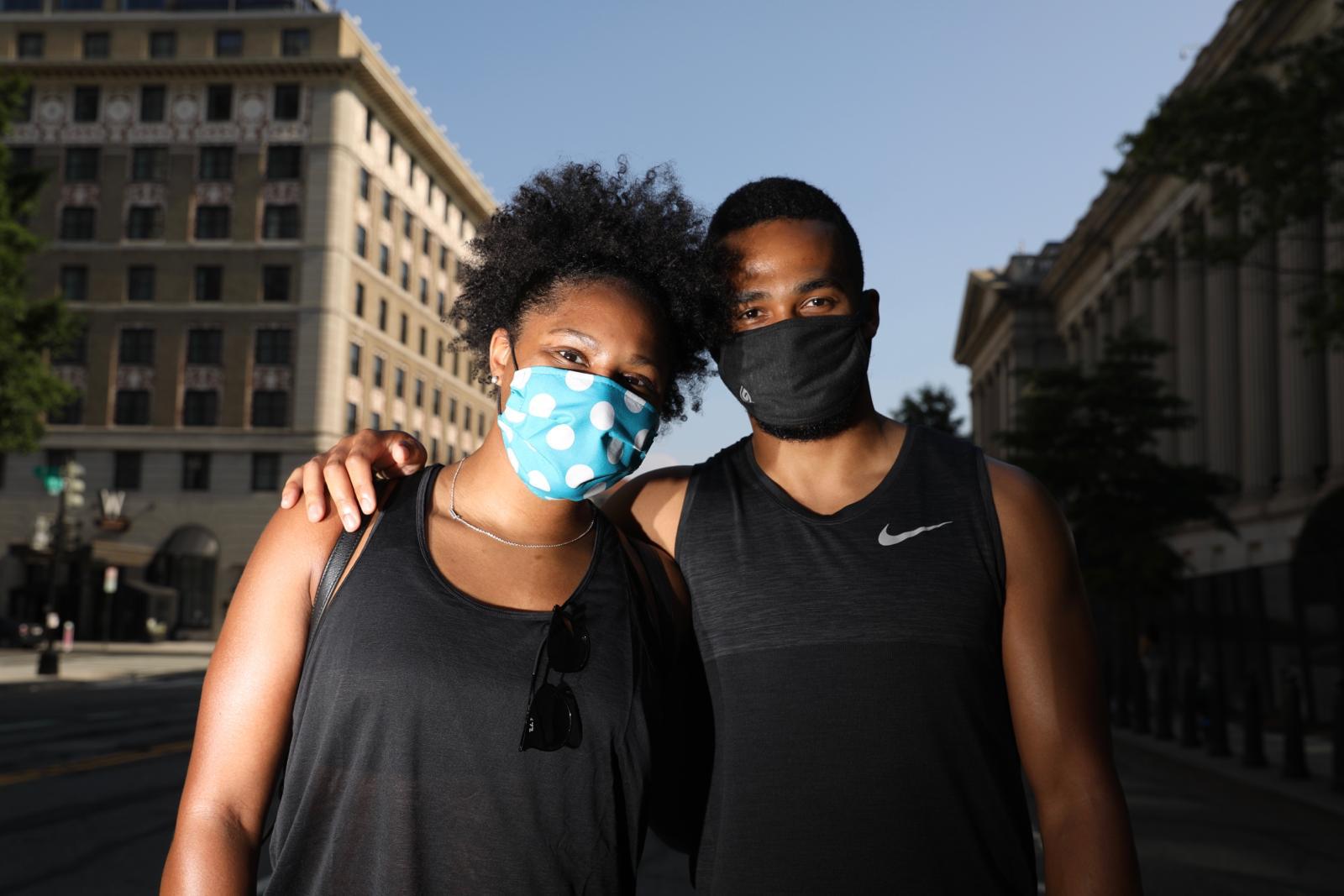 Couple Aliyah Graves-Brown and Austin Riddick, of D.C., on 15th Street NW near the White House