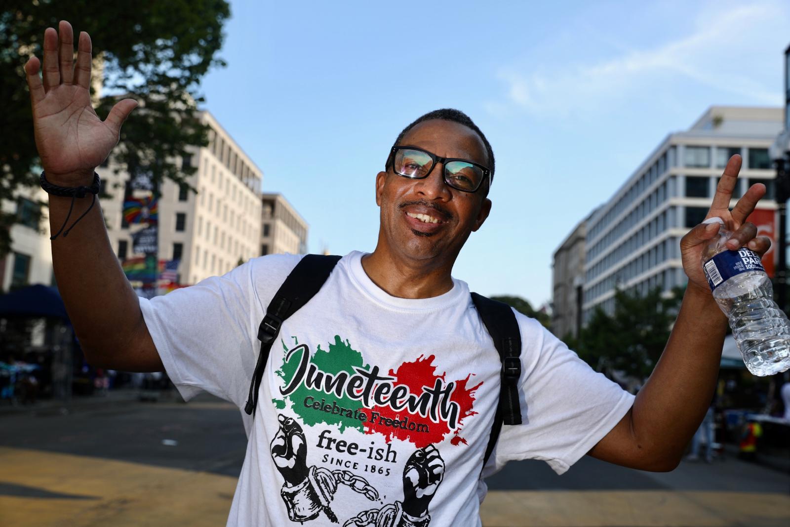 Riddick, 22, said his family has never celebrated July 4th. “This year, like every year, freedom is an idea and something to strive for,” he said. “And it’s not a reality and it never has been. But on days like Juneteenth, which my family does celebrate, it’s an idea that we believe is possible and we believe will eventually become a reality, with a lot of work on the part of Black people but everyone else as well.”