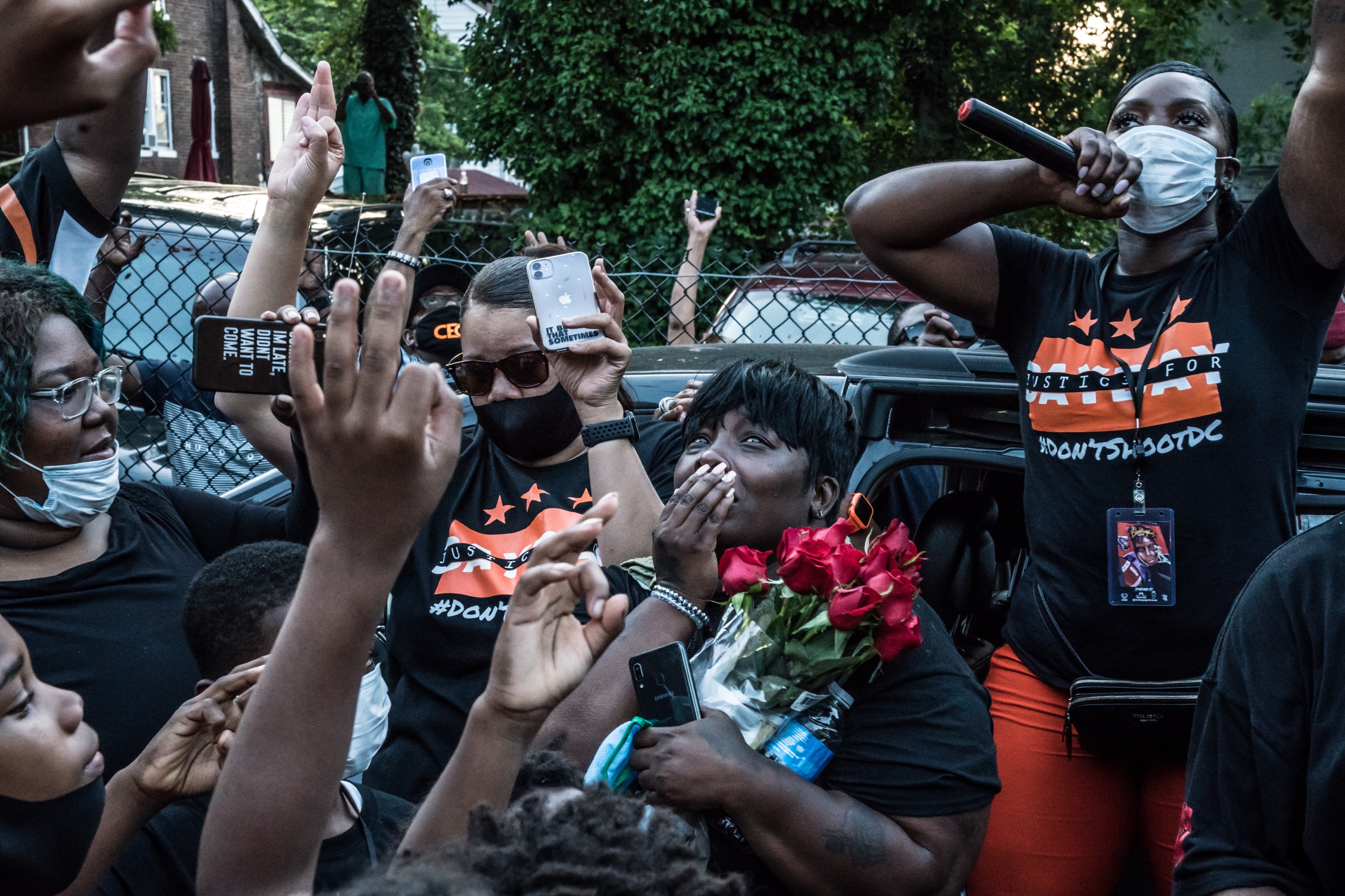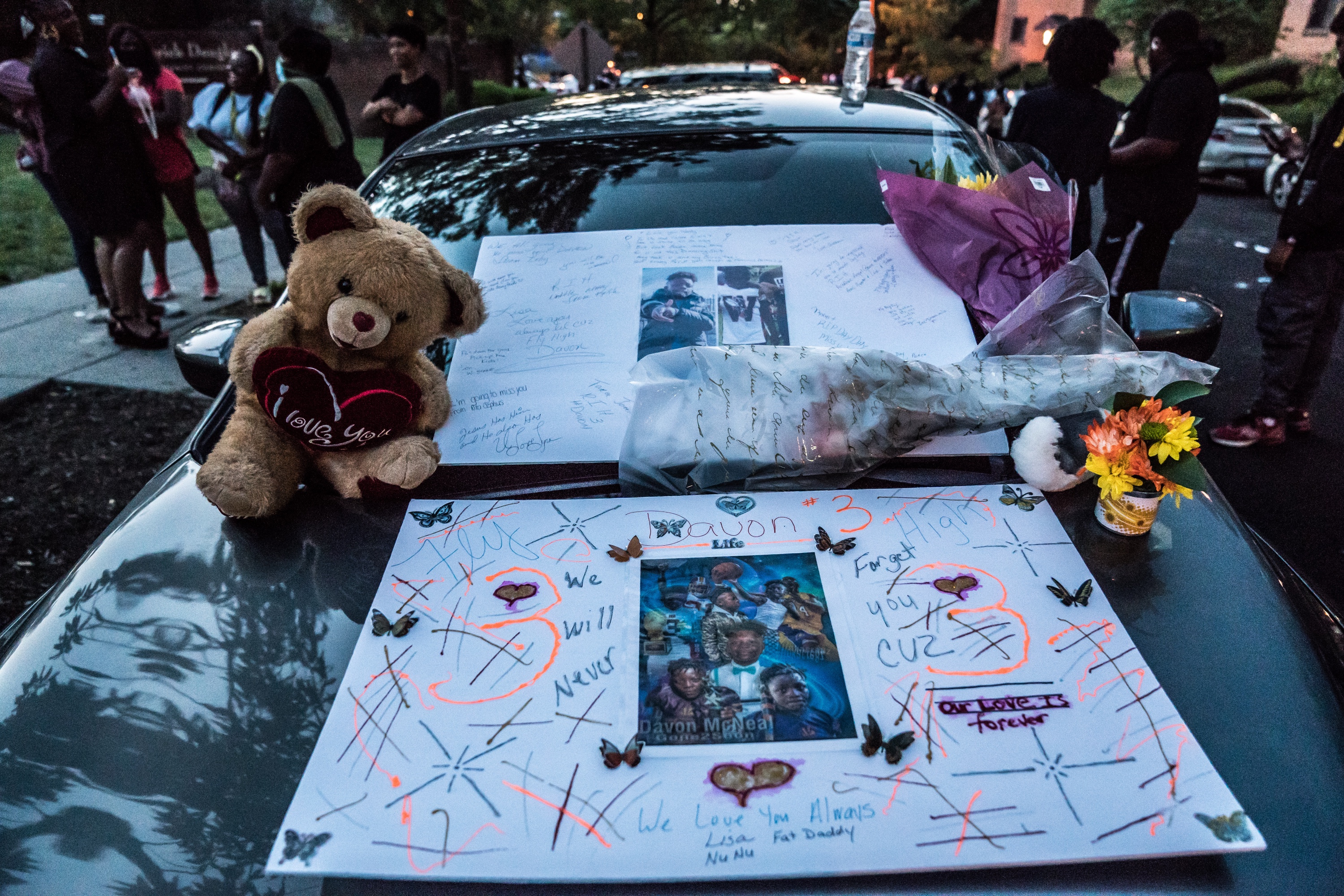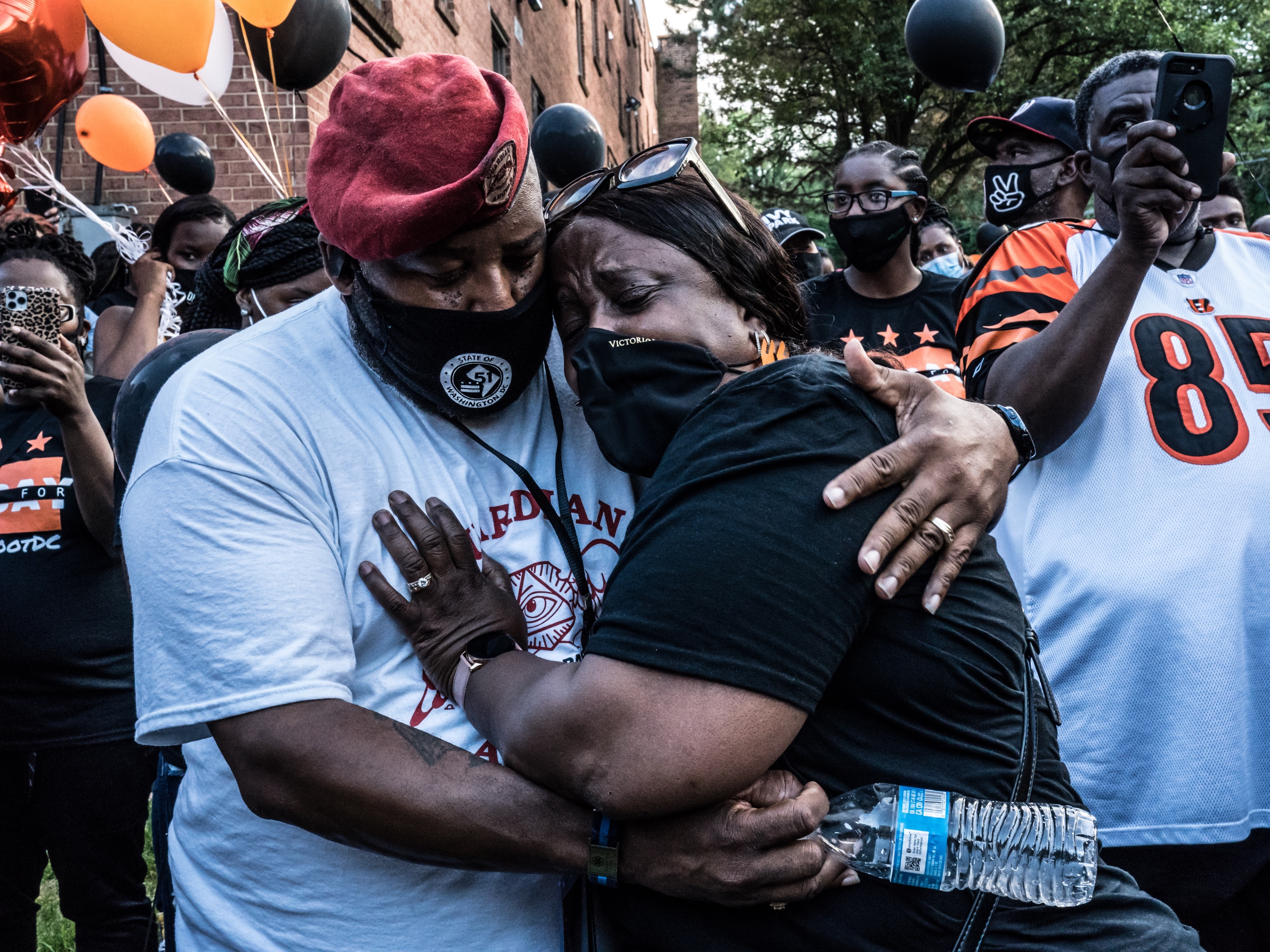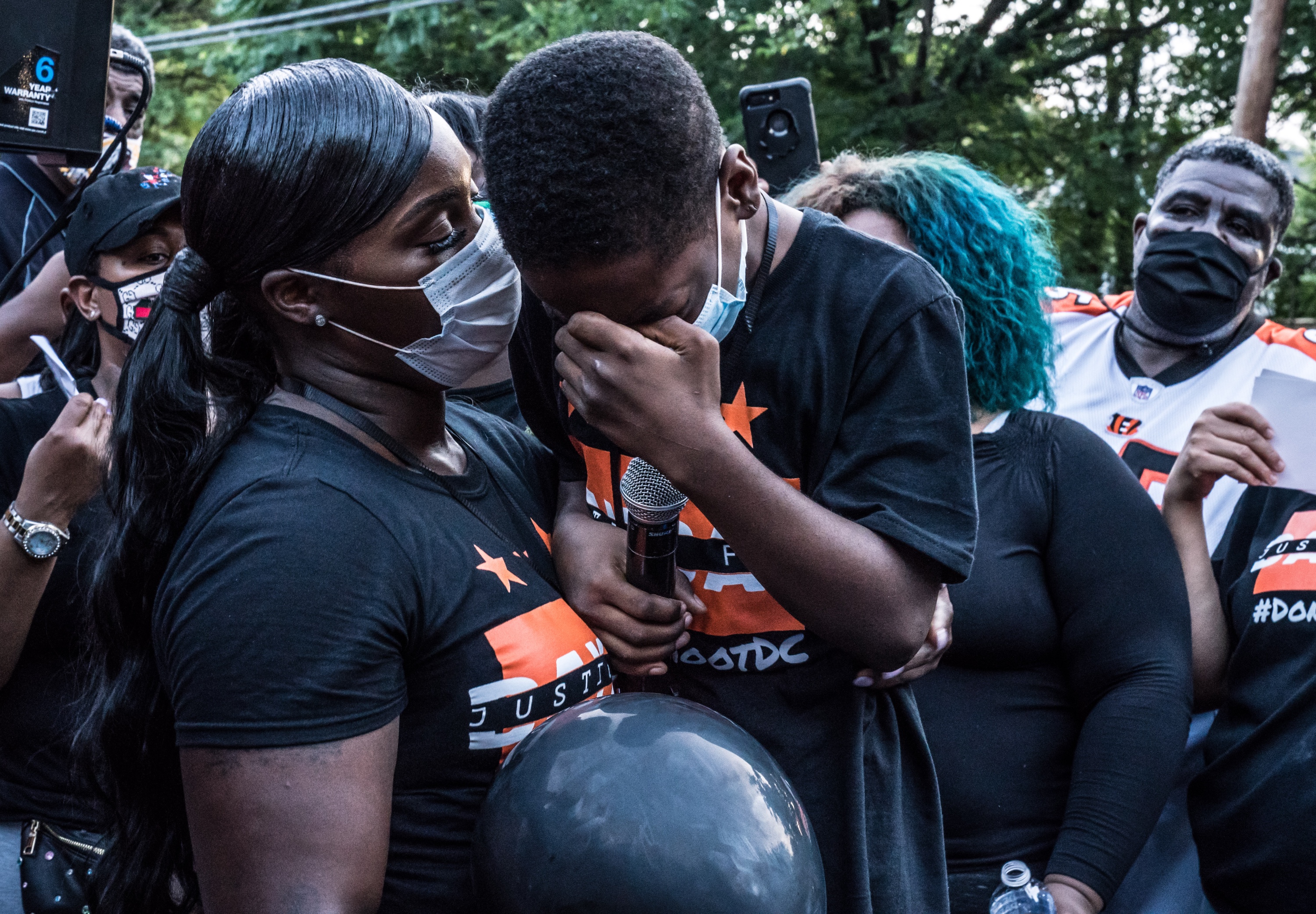 Members of Davon’s football team, the Metro Bengals, arrive at the balloon release to remember their teammate.Dee Dwyer / DCistJohn and Wanda Ayala, Davon’s grandparents, support each other during the event.Dee Dwyer / DCistA woman introduced to the crowd as “Ms. Lee” performs the song “His Eye Is On The Sparrow.”Dee Dwyer / DCistLoved ones and supporters listen to the speakers, which included friends, politicians and activists.Dee Dwyer / DCistAntonio McNeal, Davon’s big brother, shares some of his favorite memories with his little brother.Dee Dwyer / DCistXavione Brown, one of Davon’s teammates, breaks down while speaking about his favorite moments with his friend.Dee Dwyer / DCistPeople light a candle arrangement in the shape of the number 3, which was Davon’s football jersey number.Dee Dwyer / DCistThe crowd begins to release their balloons, many of which were black and orange in honor of Davon’s football team.Dee Dwyer / DCistCrystal McNeal, Davon’s mother, watches the balloons soaring into the sky in remembrance of her son.Dee Dwyer / DCistA car turns into a somber memorial, covered in posters and flowers and notes to Davon.Dee Dwyer / DCist