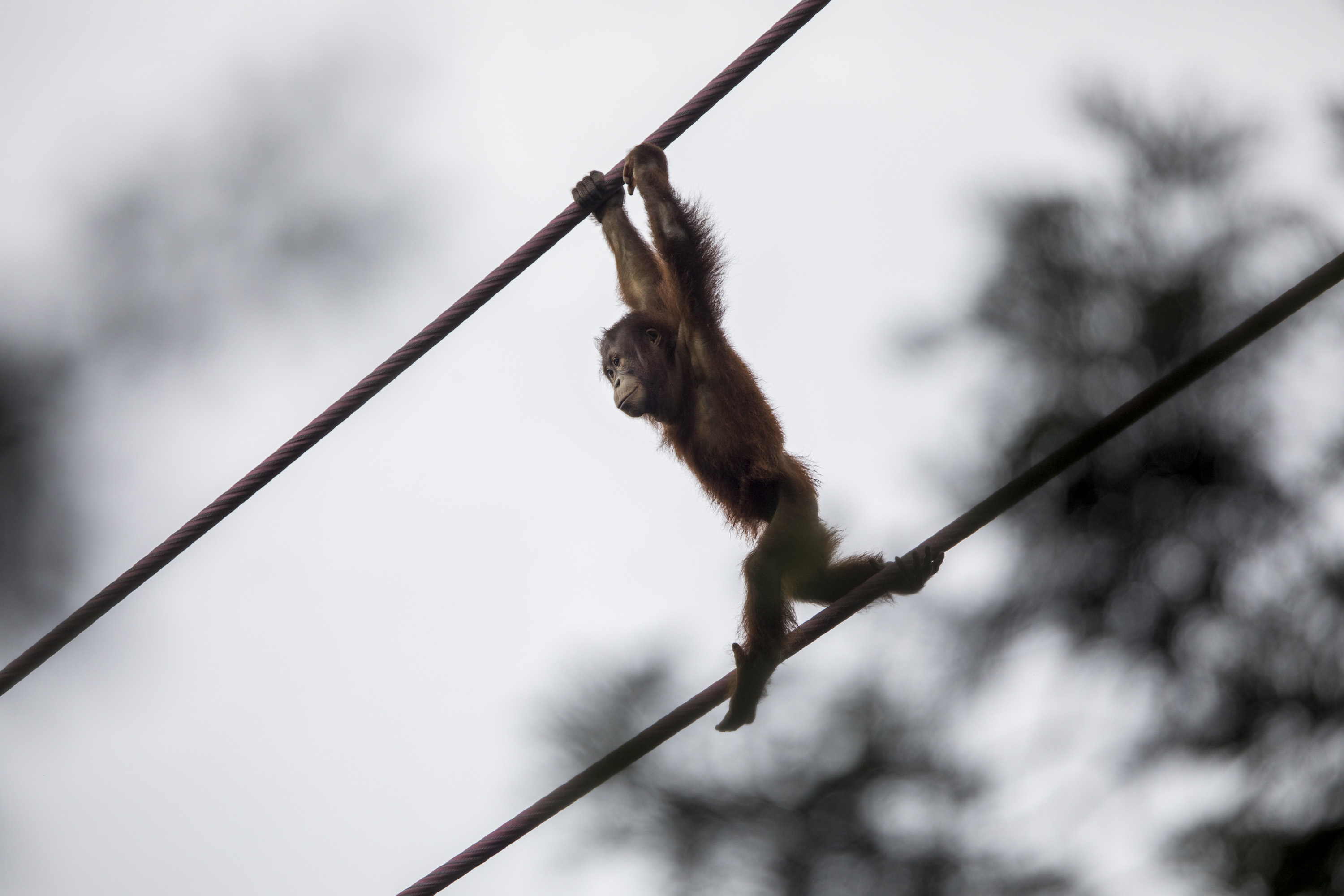 One of the Bornean orangutans crosses the O-Line, the 50-foot-high suspended cable track at the National Zoo. “It feels great. It feels so nice to be able to just take a walk through the zoo and enjoy seeing animals if I can…I think it is an amazing place, and I think Washington, D.C. is very lucky to have this institution here,” said Bridget Watts, a resident of the District.