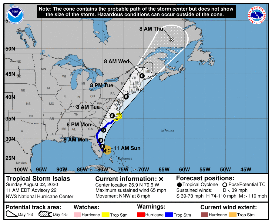 8/3 (5:15AM) The @NHC_Atlantic has released 5AM Key Messages for Tropical Storm #Isaias.