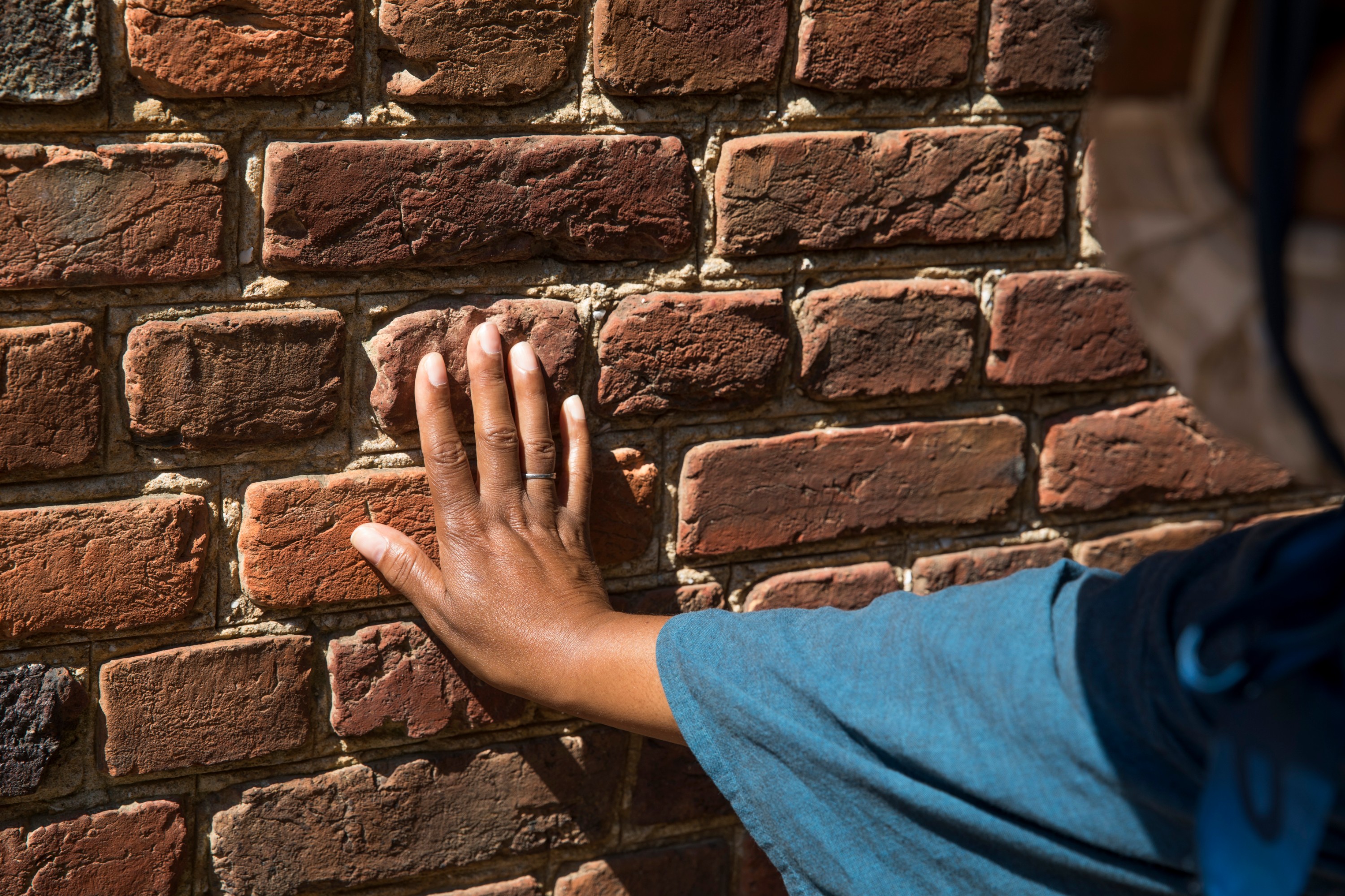 The bricks that were used to build the slave quarters at Mount Vernon were forged by the enslaved people of the plantation. Some of them left fingerprints in the clay. Parker poses with her fingers in the hardened indentations of her favorite brick — a sort of spiritual handshake. “This was [our] ancestors work. They left us tangible evidence of their existence here. And that’s lasting,” she says.