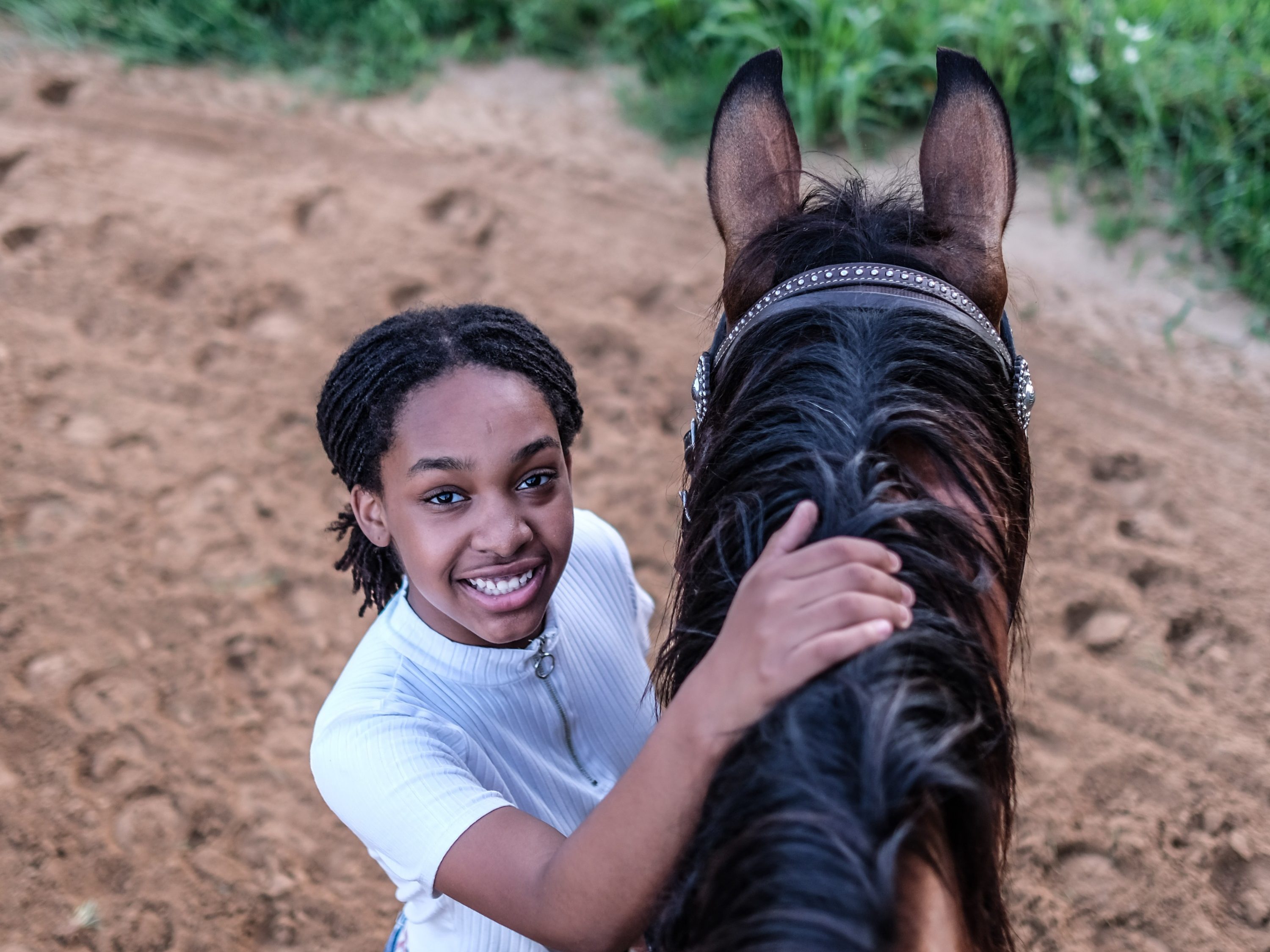 Joan Brown (no relation to Selina Brown) is Roundtree’s grandmother, and is grateful for the program. “At this time, when you really can’t do too much until things reopen, it gives my granddaughter, Kierra, something different to experience. It helps improve self-esteem and mindset,” she says. “Sometimes kids don’t feel comfortable talking to anyone but then they feel comfortable talking with a horse.”