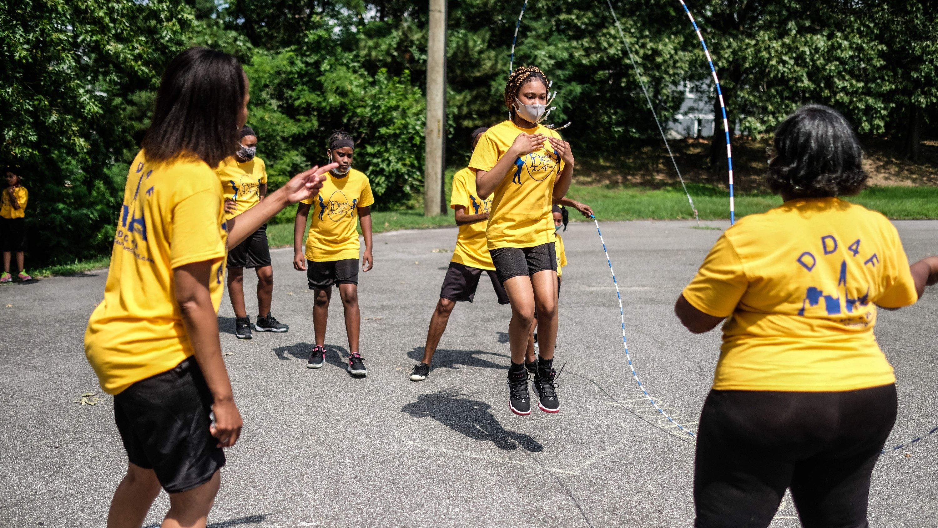 Ebb, a longtime jumper with a group called DC Retro Jumpers, started Double Dutch For Fun in 2012 to provide a physical activity for youth. It’s grown from there. In early March, before the pandemic, Ebb says 50 boys and girls of all cultures jumped with Double Dutch for Fun, including in after-school programs.