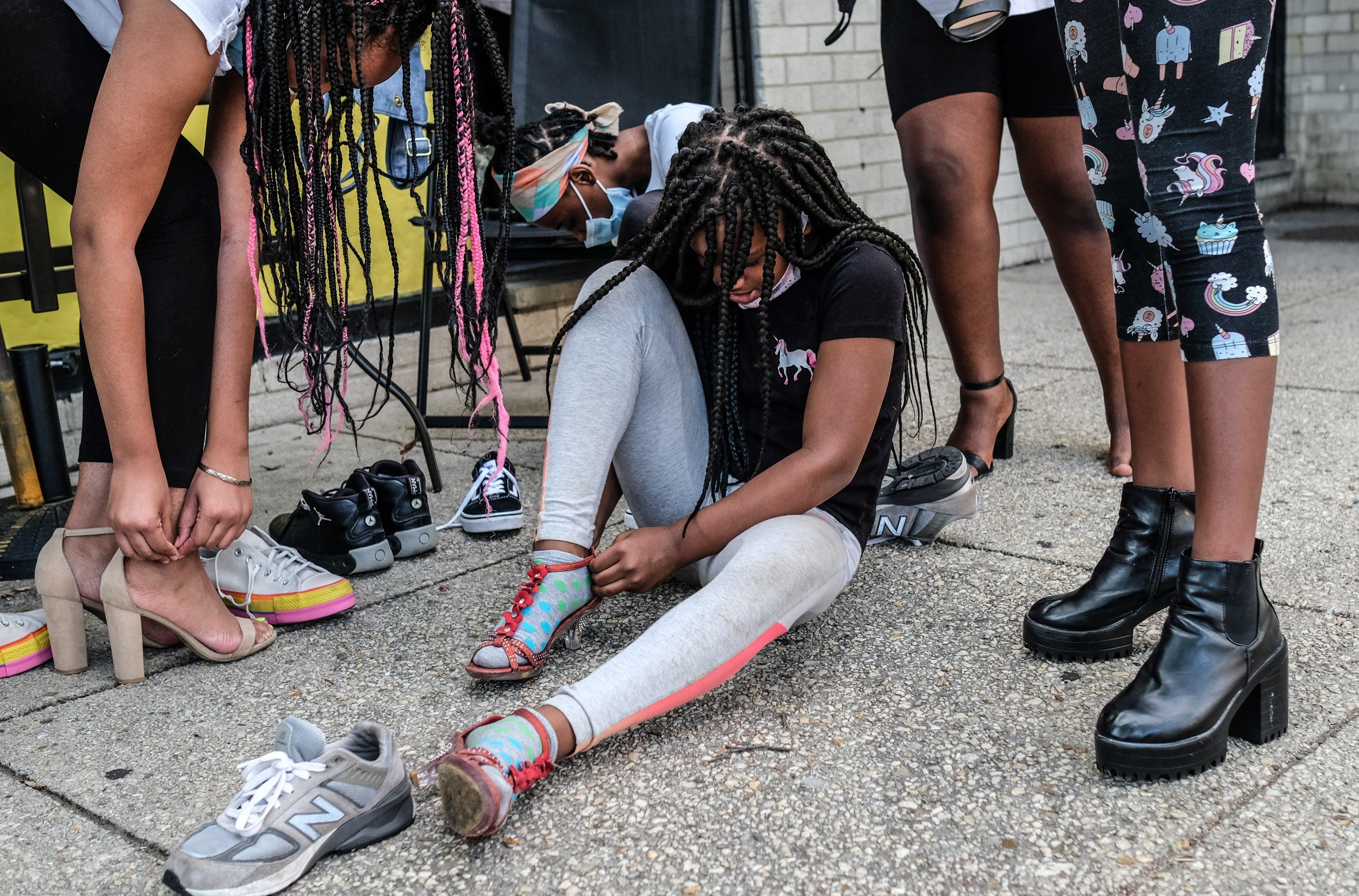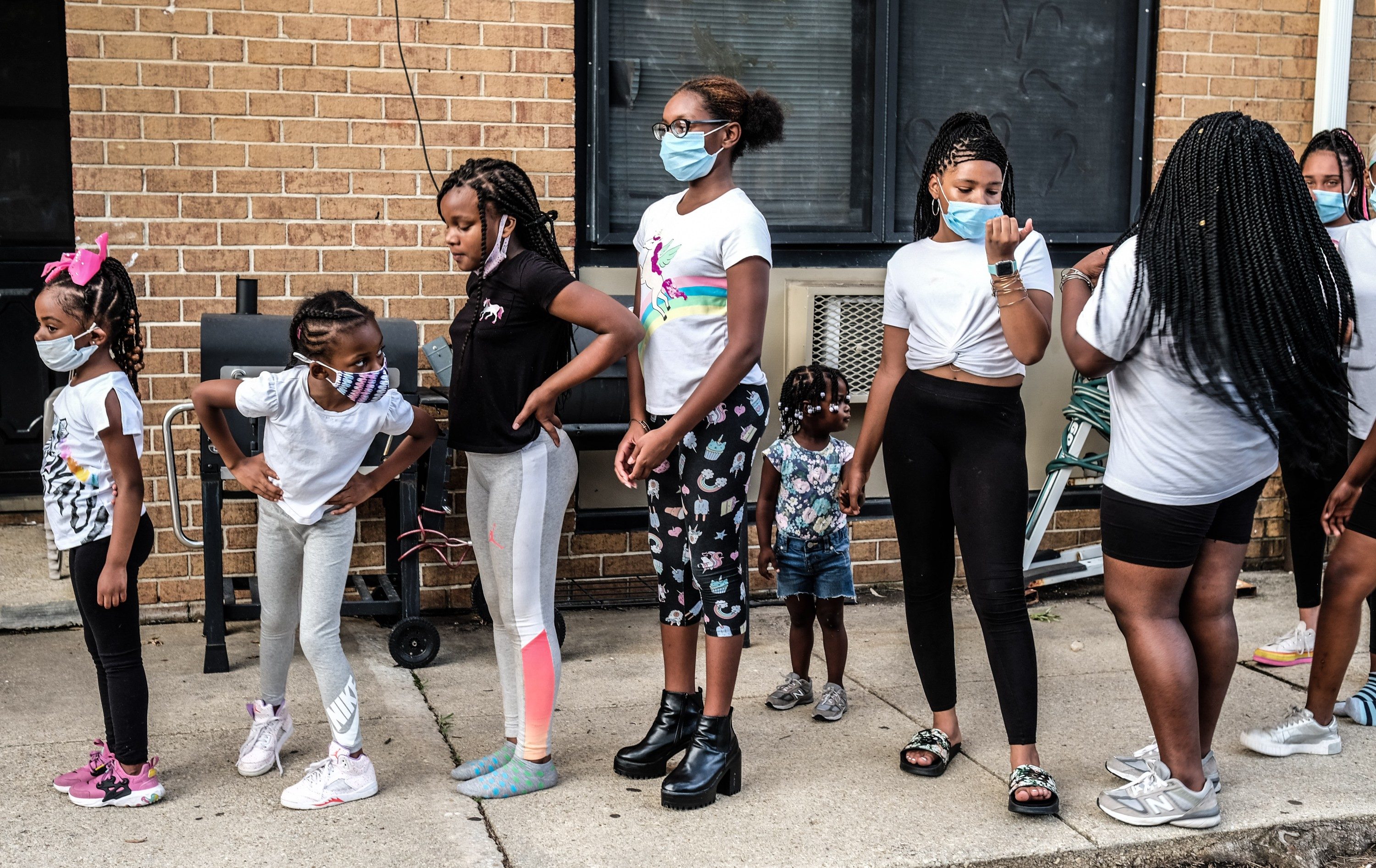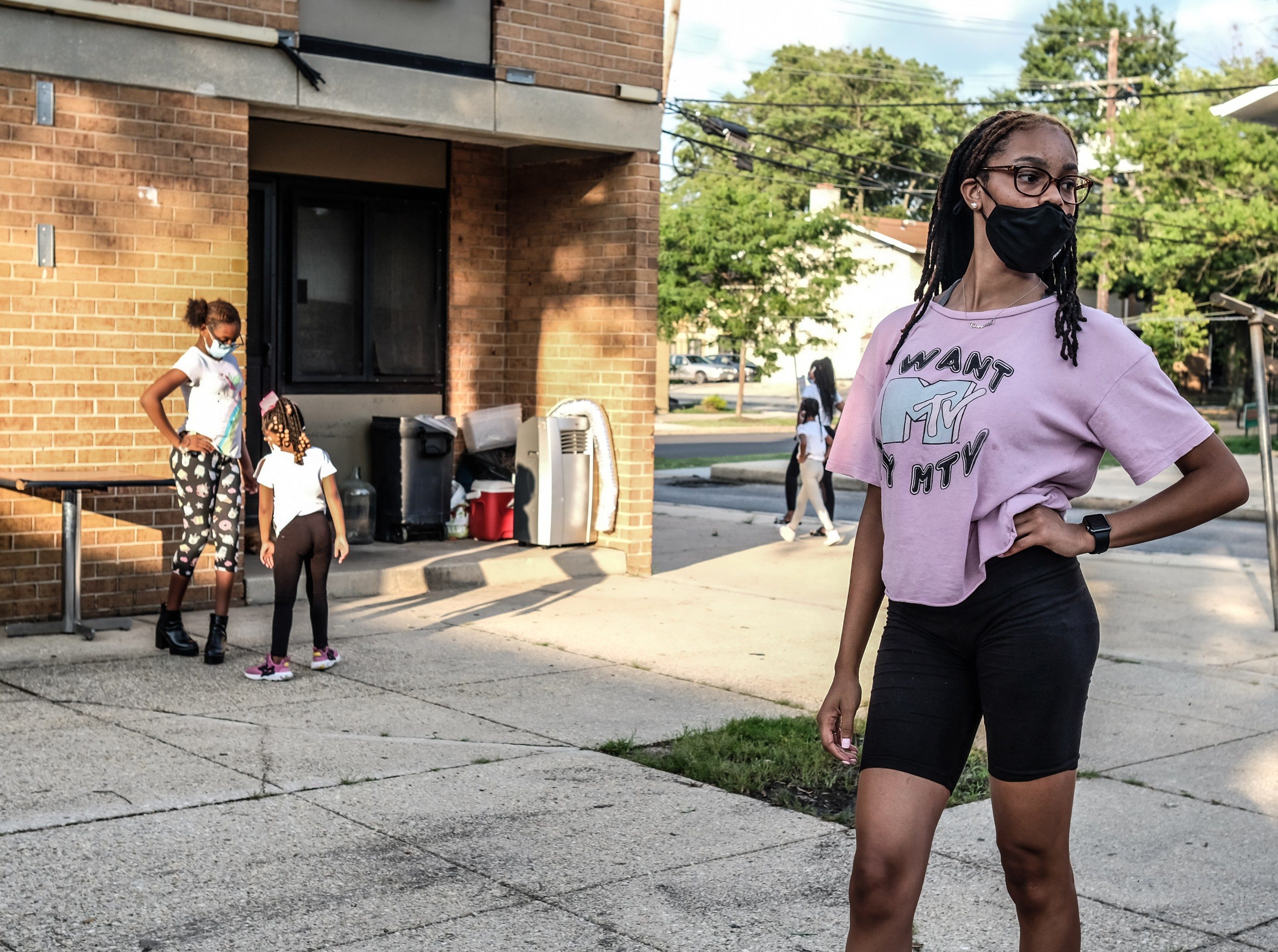 Vernetta Simmons, the mother of 13-year-old Anaijah Chambers, says that her child “has a sisterhood with Indy.B. She’s in the house all the time with nothing to do due to school closure. She watches a lot of TV. Her sleeping pattern is all the way off, so we’re out here today trying to get them back on track.” Some girls ran towards their friends when they arrived.