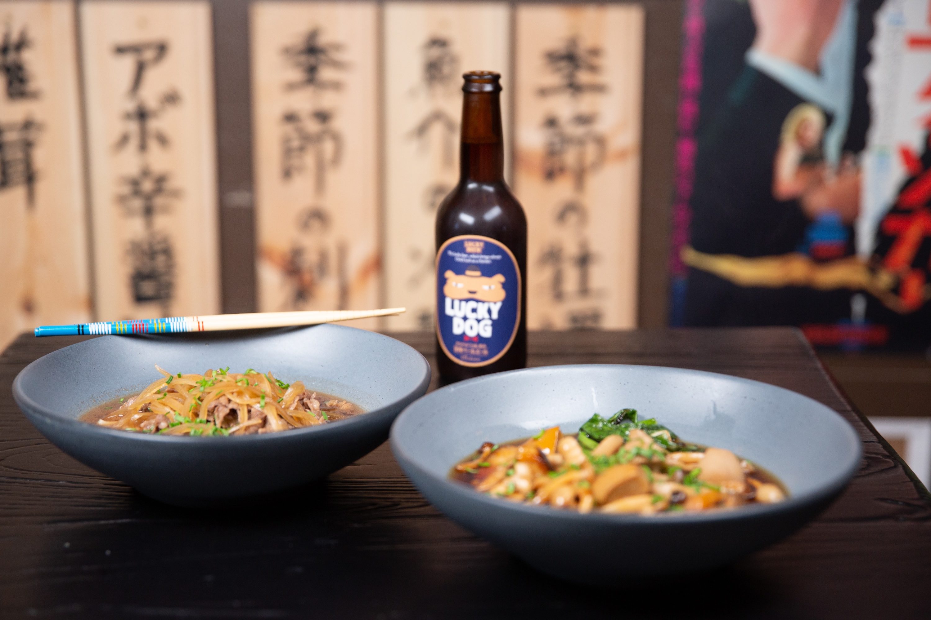 COVID-19 regulations have put a damper on Norris’ full vision of his concepts being bustling hangouts (there’s no bar seating or standing room available), but customers are still able to grab food and drink through table service, at 50% capacity. There’s also a small parklet out front for outdoor eating. Takeout food and beer is already up and running at Shibuya Eatery, and Norris expects to roll out to-go cocktails from Death Punch in a week or so.