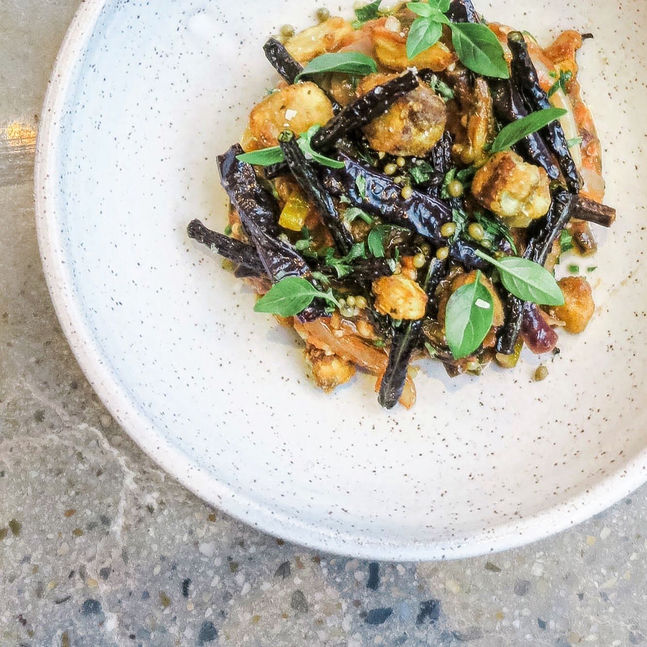 This is why Oyster Oyster bills itself as plant-forward, not vegetarian, Kuller says. “Our philosophy isn’t just about vegetables, it’s about stewardship, from the business practices of vineyard partners to compostable takeout boxes to cocktails using scraps from cooking,” he says. The restaurant also offers vegan options.