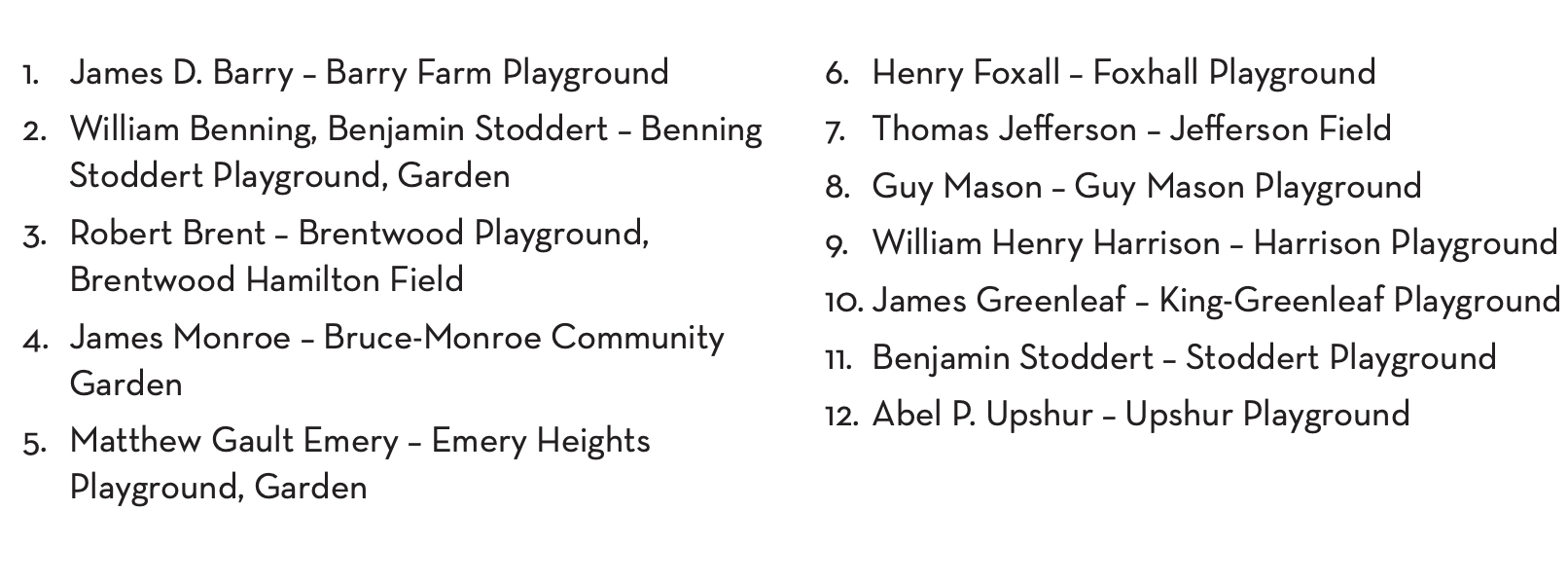 In addition to its renaming and contextualizing recommendations, the group outlined ways to “fortify DC values” when dedicating public works going forward. Its research showed that 70% of the city’s assets are named for white men, many of whom did not live in D.C.