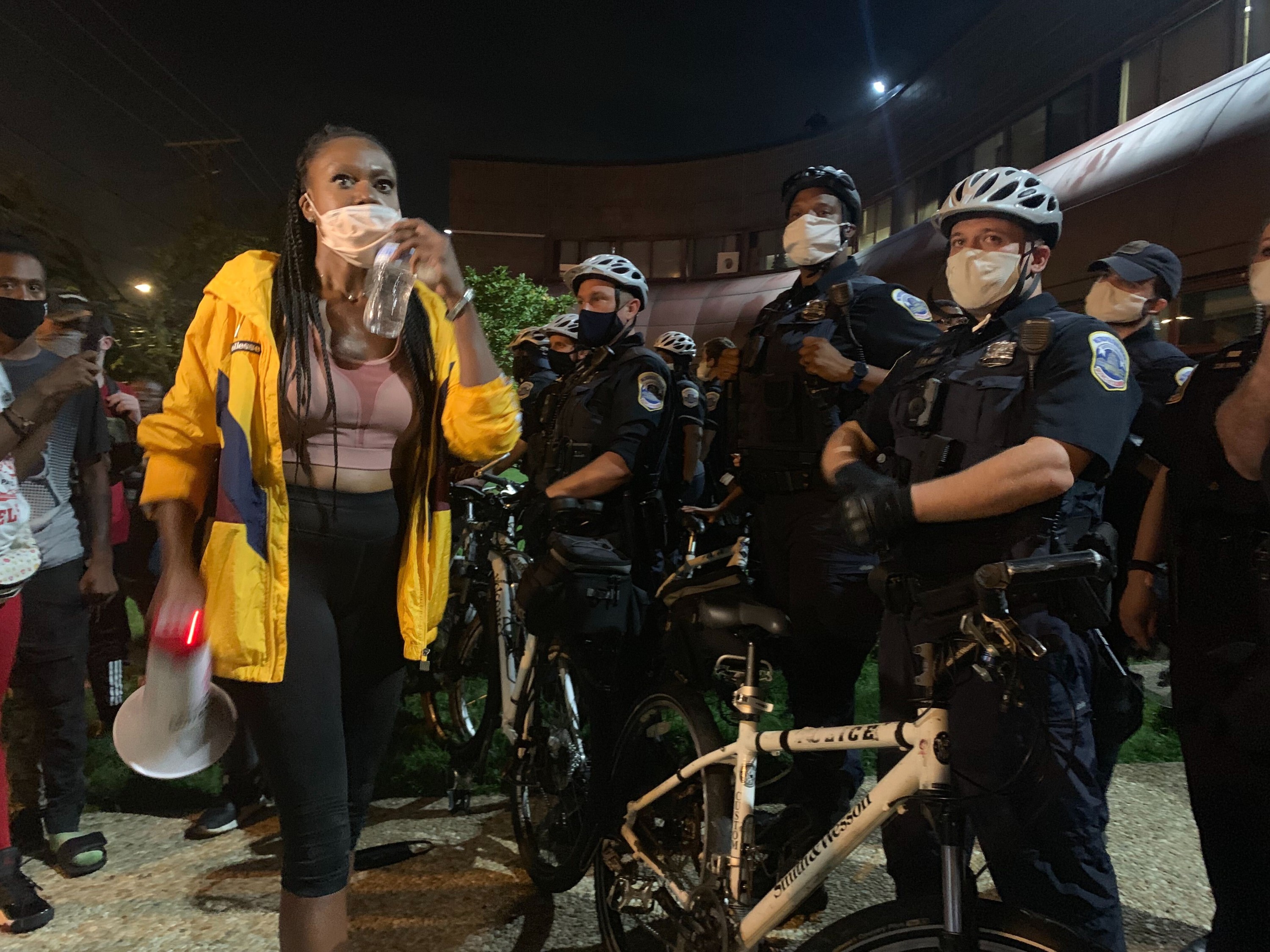 Early Thursday, another group of protesters with Sunrise Movement D.C., an advocacy group fighting climate change, marched to Bowser’s home in the Colonial Village neighborhood, calling on the mayor to defund the Metropolitan Police Department and fire Newsham.