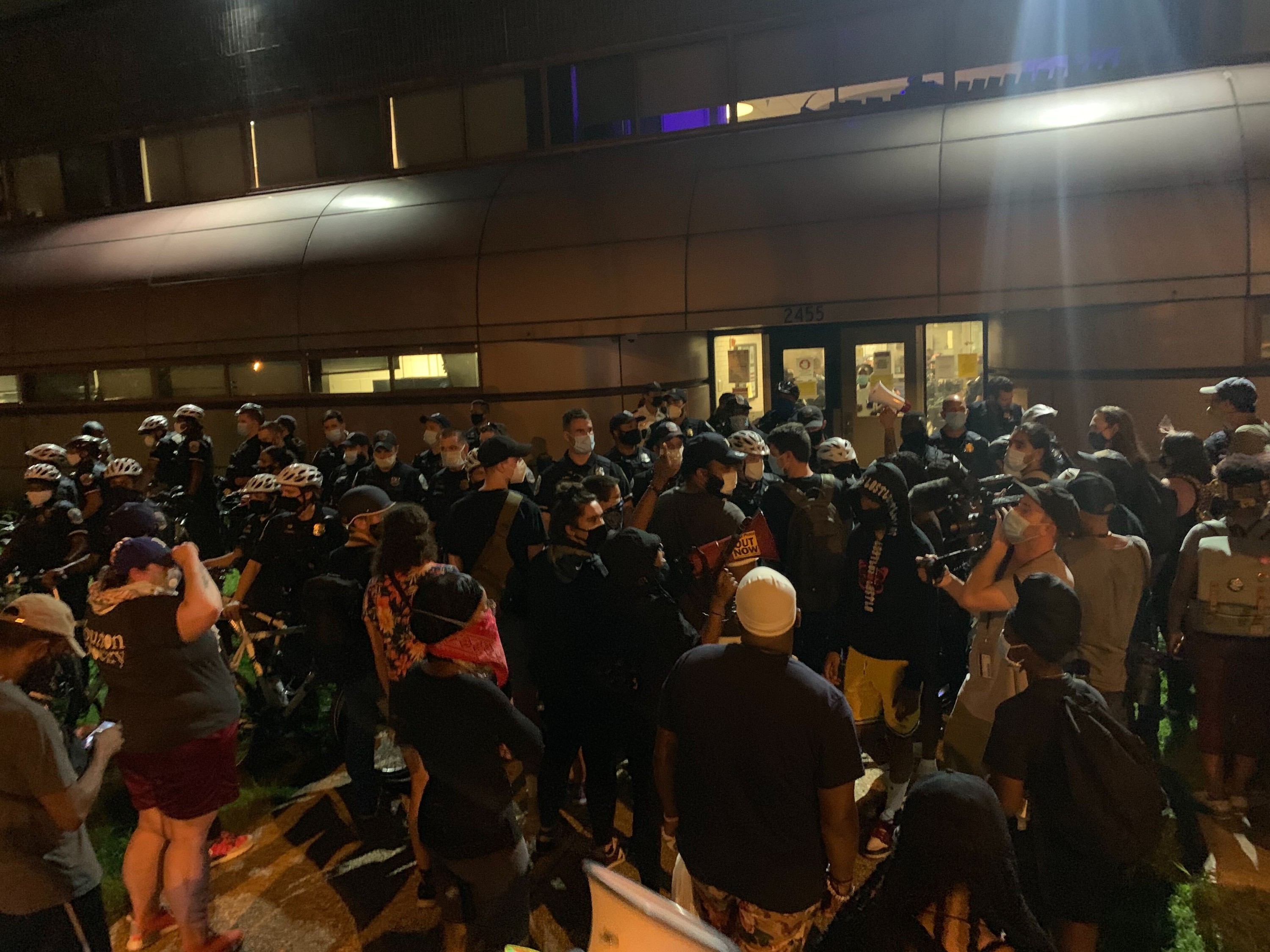 “If you don’t defund the police, then you shouldn’t bother running for reelection,” a protester said into a megaphone.