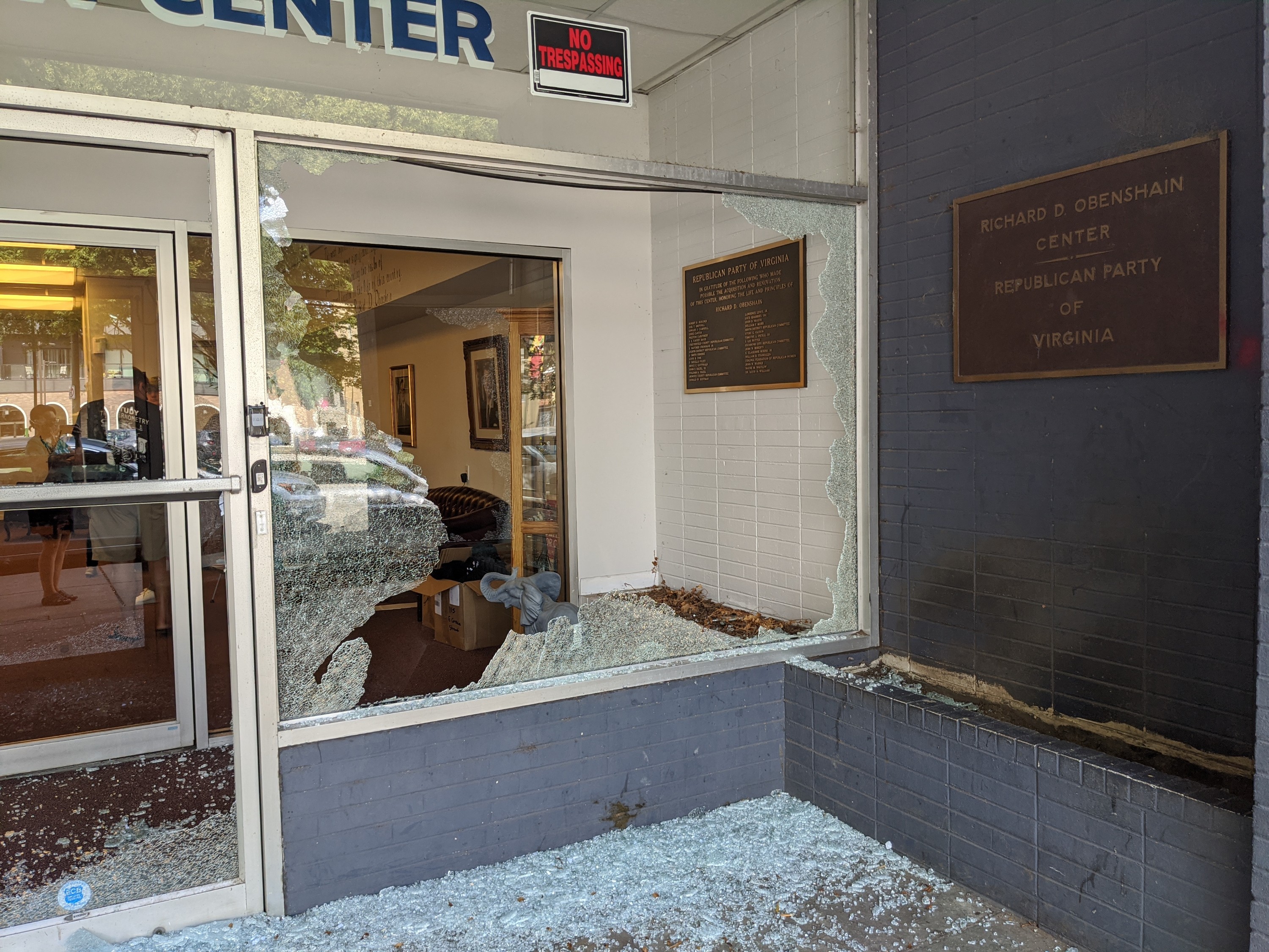 “I’m not sure who did it, but I imagine it was a protester who finally googled the Republican Party of Virginia and found our address and came down here and decided to take matters into their own hands,” he says.