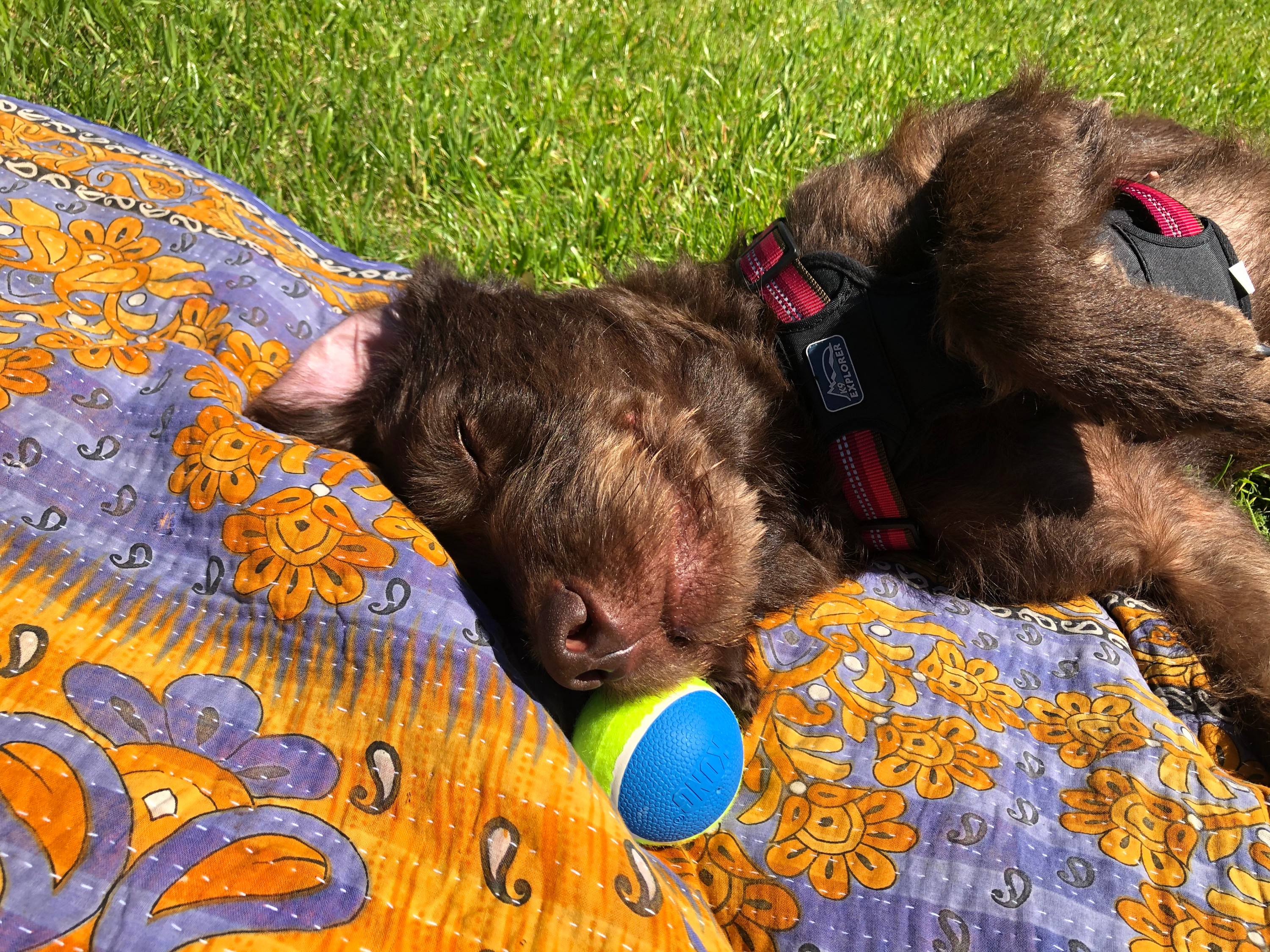 “Because I had so much experience with other people’s dogs, I knew what kind of traits that in an ideal world I’d want to have in my dog,” Schiff says. “I needed a dog that’s at least comfortable home alone, and he truly is — he just sleeps and plays with his toys.”