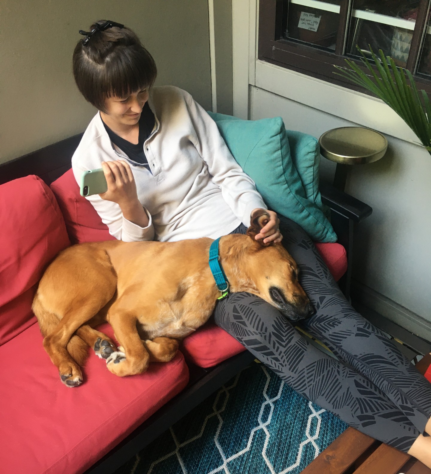 Schiff, who lives alone, describes Dante as a little shadow following her around “in the best way.” With the local improv theater where she teaches and performs temporarily closed, and many of her friends quarantined with their with partners, Schiff says Dante has been an invaluable antidote to her loneliness.