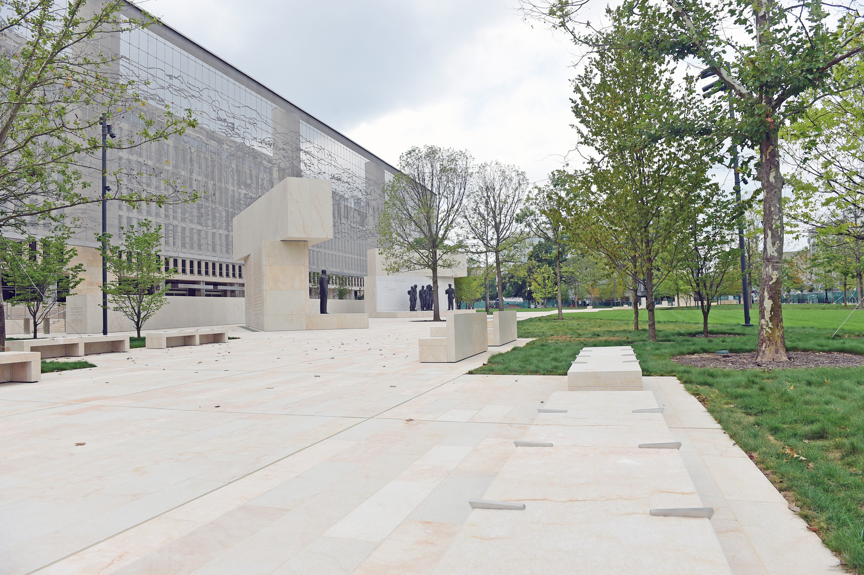 The city’s newest memorial honoring the presidential and military legacy of Dwight D. Eisenhower is filled with sounds of jackhammers, pounding concrete, and idling bulldozers. It’s a Friday afternoon, less than a week before it is set to open to the public.