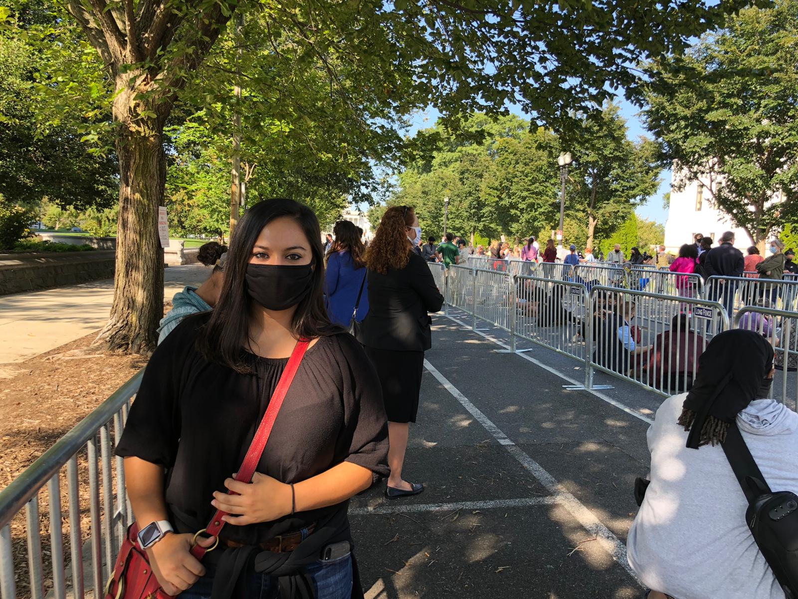 Southern Virginia resident Brianna Martinez was among one of the hundreds waiting to pay their respects by mid-morning. Martinez drove more than three hours (plus a 45-minute Metro train ride) to make it to the court on Wednesday. She says being surrounded by hundreds of others honoring Ginsburg made the trip worthwhile — no matter how long it took.