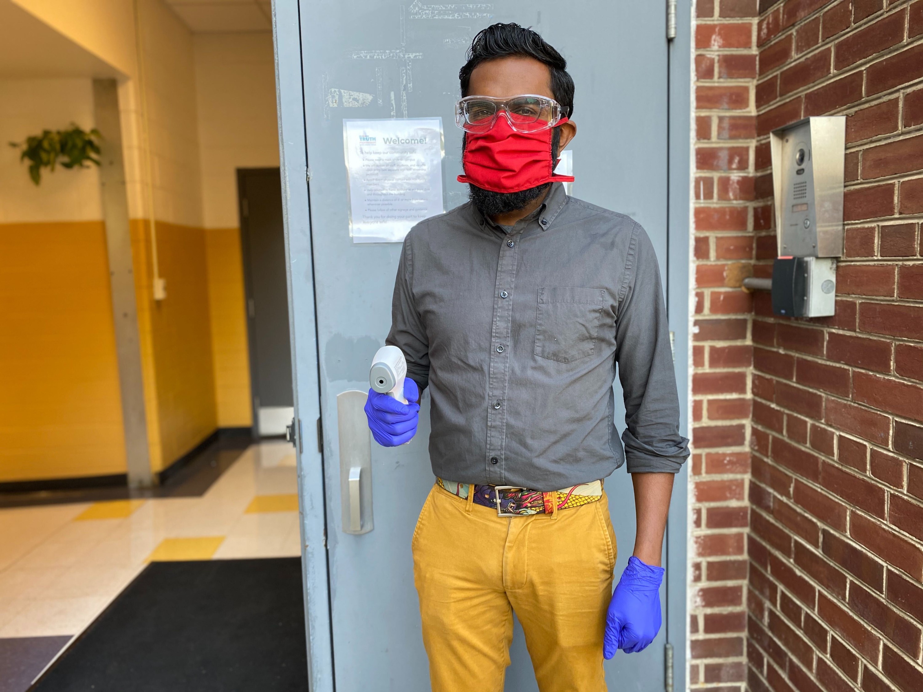 Students’ face masks occasionally slip down the bridge of their nose or they forget to keep a six feet distance from classmates. Teacher Johari Malik said the students are responsive to reminders.