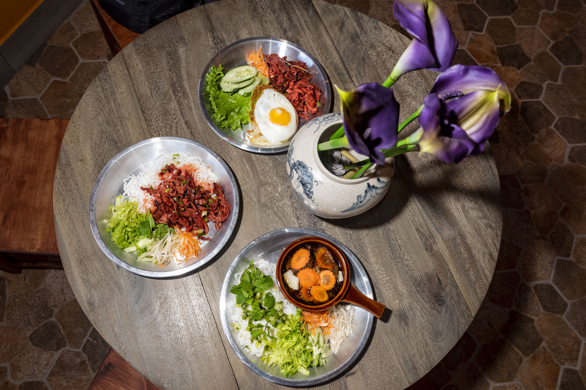 The restaurant’s vision, says manager Khuong Nguyen, is “to showcase the distinct taste of food from the Northern region of Vietnam and a physical journey of what you can eat on the streets of Hanoi.” The vibrant design and small, focused menu speak to the restaurant’s goal of offering “a slice of Vietnam, not only in the culinary aspect, but also an understanding of our culture through the decor,” says Nguyen.