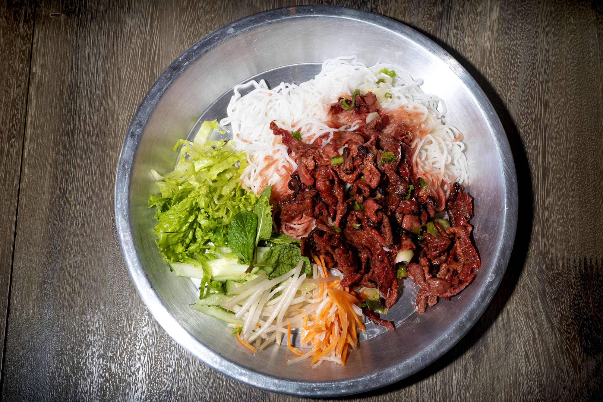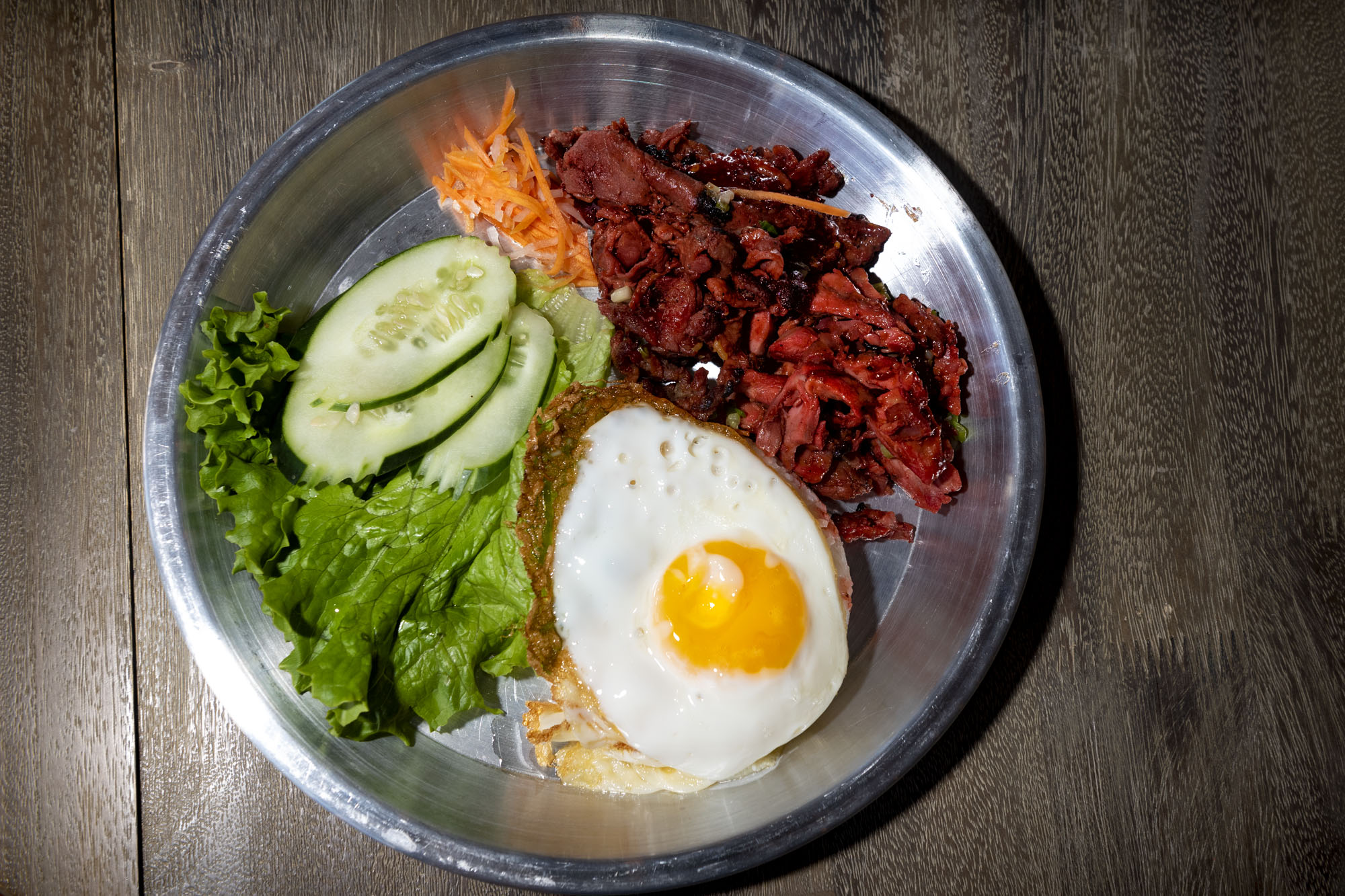 Entrees run deep with umami. The restaurant’s Com Tam (broken rice with barbecue chicken or pork) is a standout. Broken rice — which is fractured during the milling process — is stickier than regular grains, and is almost tailor-made to soak up the barbecue of the meat, the vinegary punch of a vegetable salad, the gooey fried egg that arrives on top, and the accompanying sweet and sour dipping sauce. Like nearby Ethiopian restaurants, where injera is a critical element, it is the broken rice that speaks loudest.
