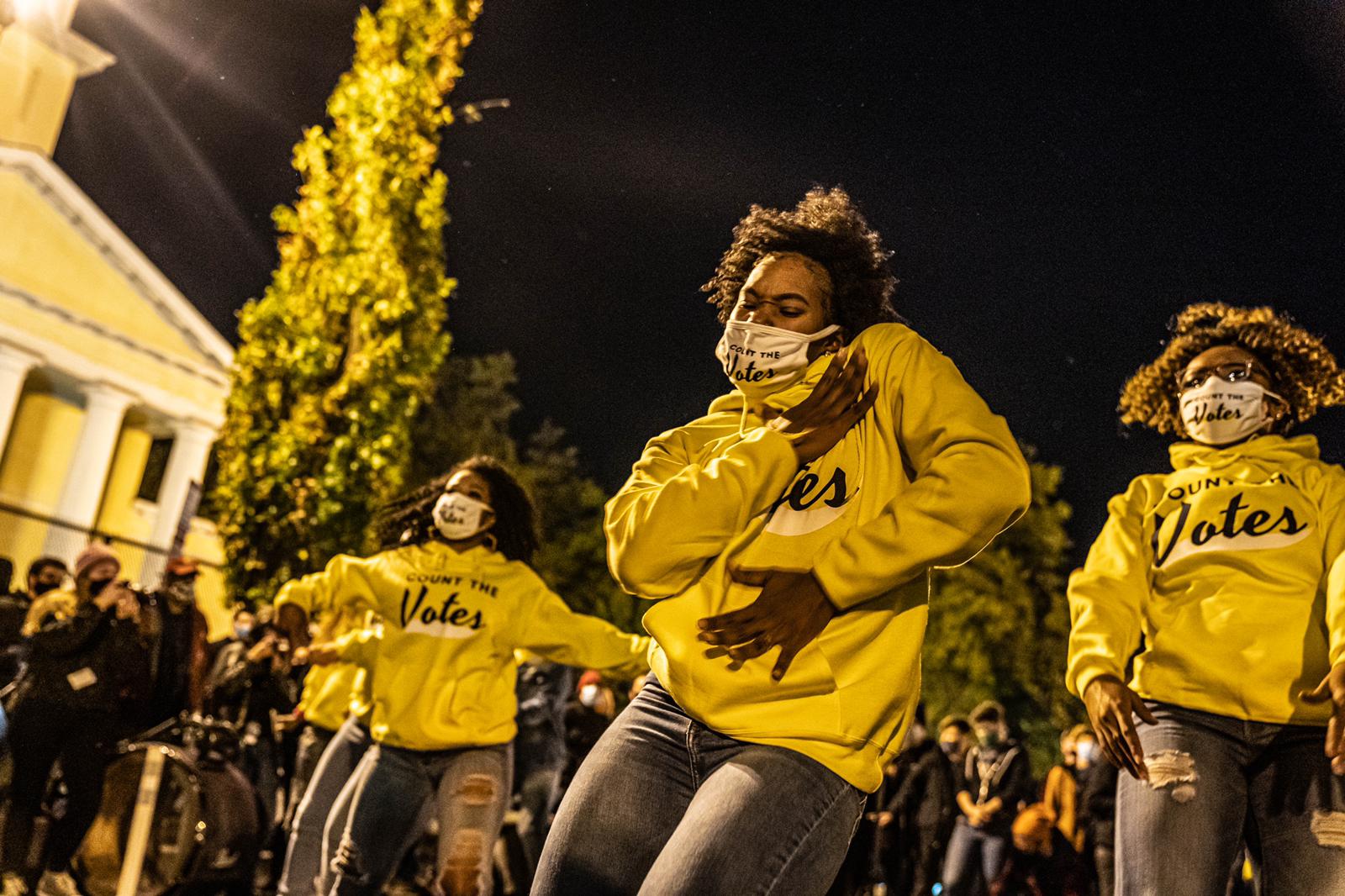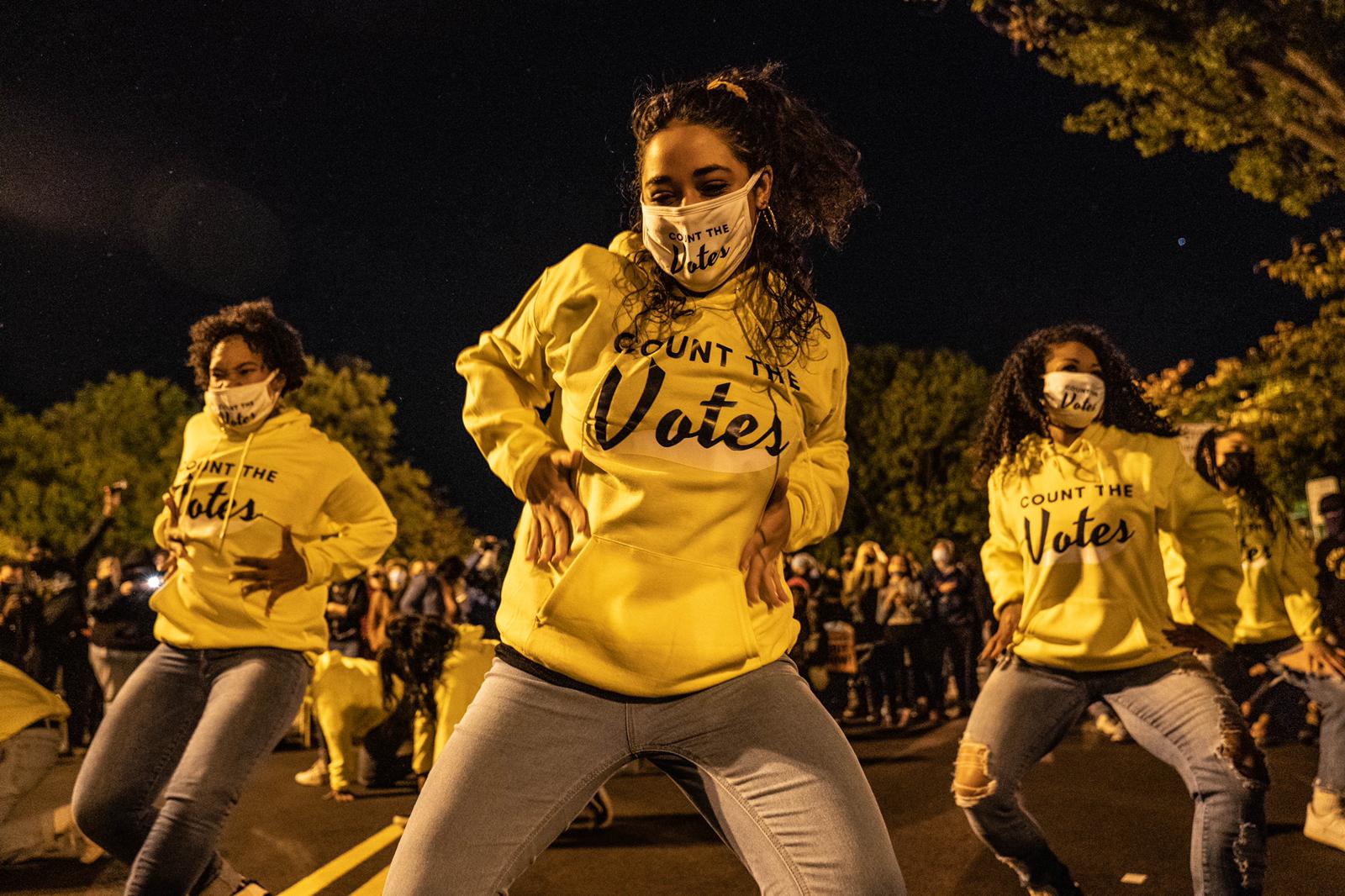 As Tuesday night turned into the early hours of Wednesday morning, activity in BLM Plaza quieted, and the results of the presidential election remained unknown. Outside 4D, the night ended with protesters gathering in a circle, and Black community leaders chanting an Assata Shakur quote: “It is our duty to fight for our freedom. It is our duty to win.”