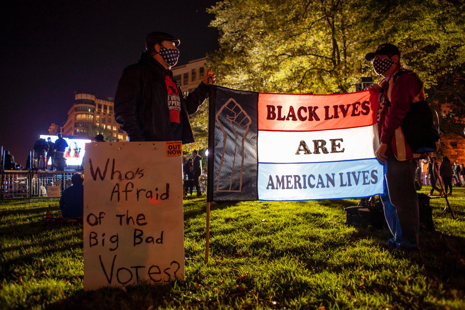 “I thought it was going to be a lot wilder. I think it’s good that it’s nice and calm, it shows that we can be rational,” said John Francis, who lives in New York City and came to D.C. for the election, as he stood in Black Lives Matter Plaza with a black and white American flag draped over his shoulders. “A lot of people here are here to support Biden and it kind of goes against the narrative that we’re gonna tear the entire city apart. As you can see, that did not happen, at all.”