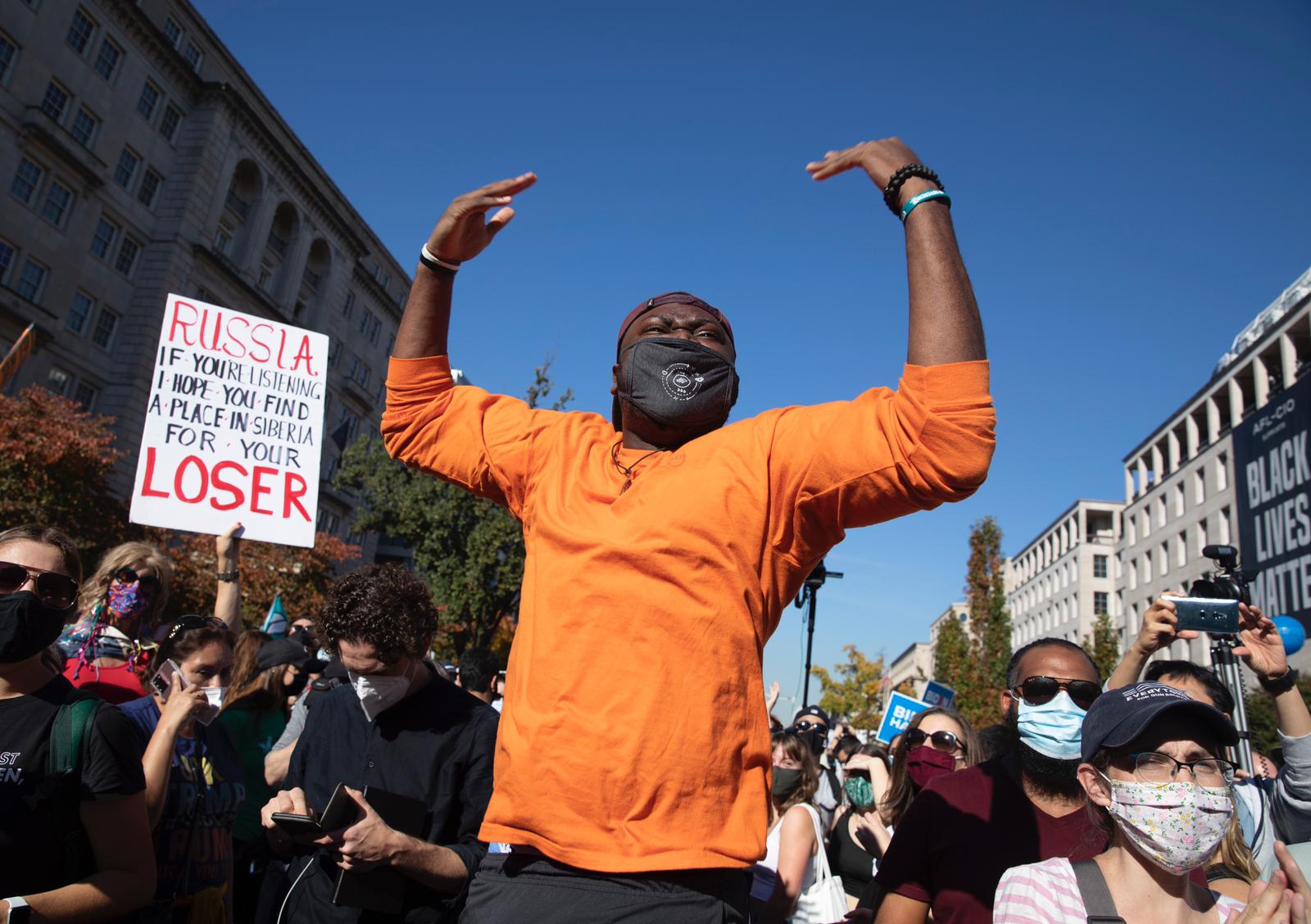 William Jones, a self-described fourth generation Washingtonian, was selling Biden-Harris T-shirts and masks in Black Lives Matter Plaza Saturday. He said Trump had demonstrated that “he’s not good for the office, he’s not good for the people of the United States.”