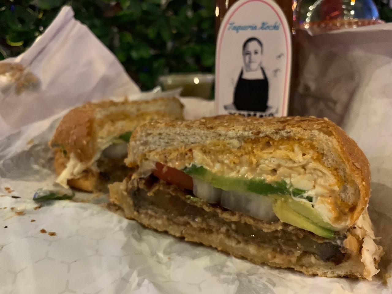 Padilla’s cemitas burst out of their tidy twine-wrapped paper cocoons, juicy piles of fried eggplant, chicken, or beef liberally smothered in creamy, melted Oaxacan cheese tailor-made for an Instagram-perfect cheese pull. A heap of beans, avocado, onion, tomato, smoked chipotle peppers – and a healthy slathering of mayo – round out the titan sandwich. All of that’s encased in the signature cemita bun, a sweet and salty brioche-style bread topped with sesame seeds. Padilla uses her grandmother’s recipe.