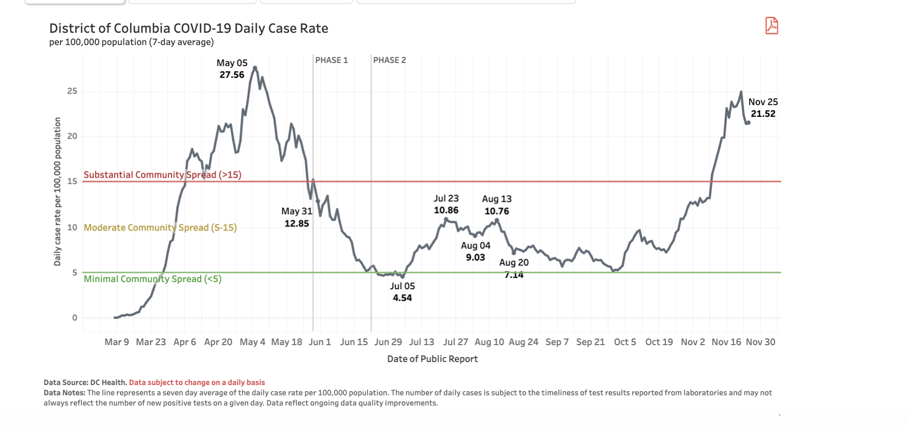 On Thanksgiving, the District saw 220 new coronavirus cases, one of the highest daily case counts ever recorded during the pandemic. This came a little over a week after the city reported 245 new cases, the second-highest total ever recorded in the District.