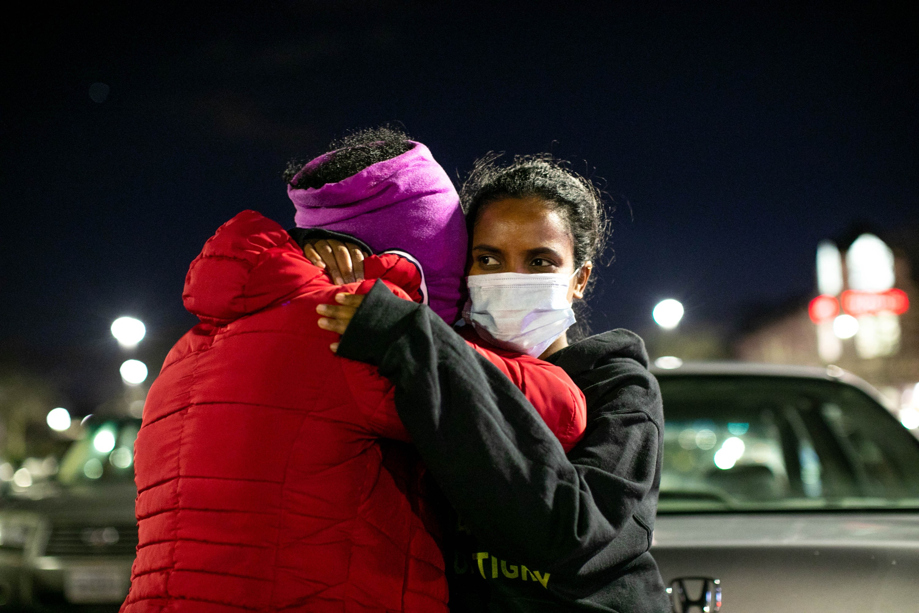 With tears gathering on the upper rim of her mask and two young children in her arms, Bitsom explains how it’s felt not being able to contact her family in the Tigray region of Ethiopia since the war there began last month.