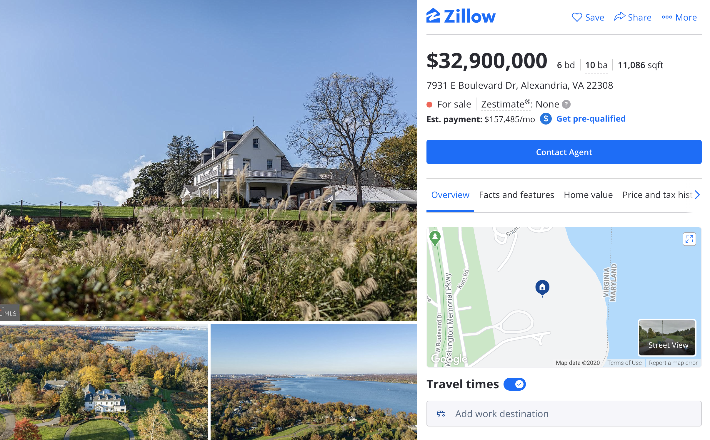 The listing touts the “unobstructed views” of the Potomac, and the “charm of the past” that envelops one upon arrival. “Once-in-a-lifetime opportunity to own 27 plus acres of riverfront property in the Washington, DC metropolitan area,” reads the listing.