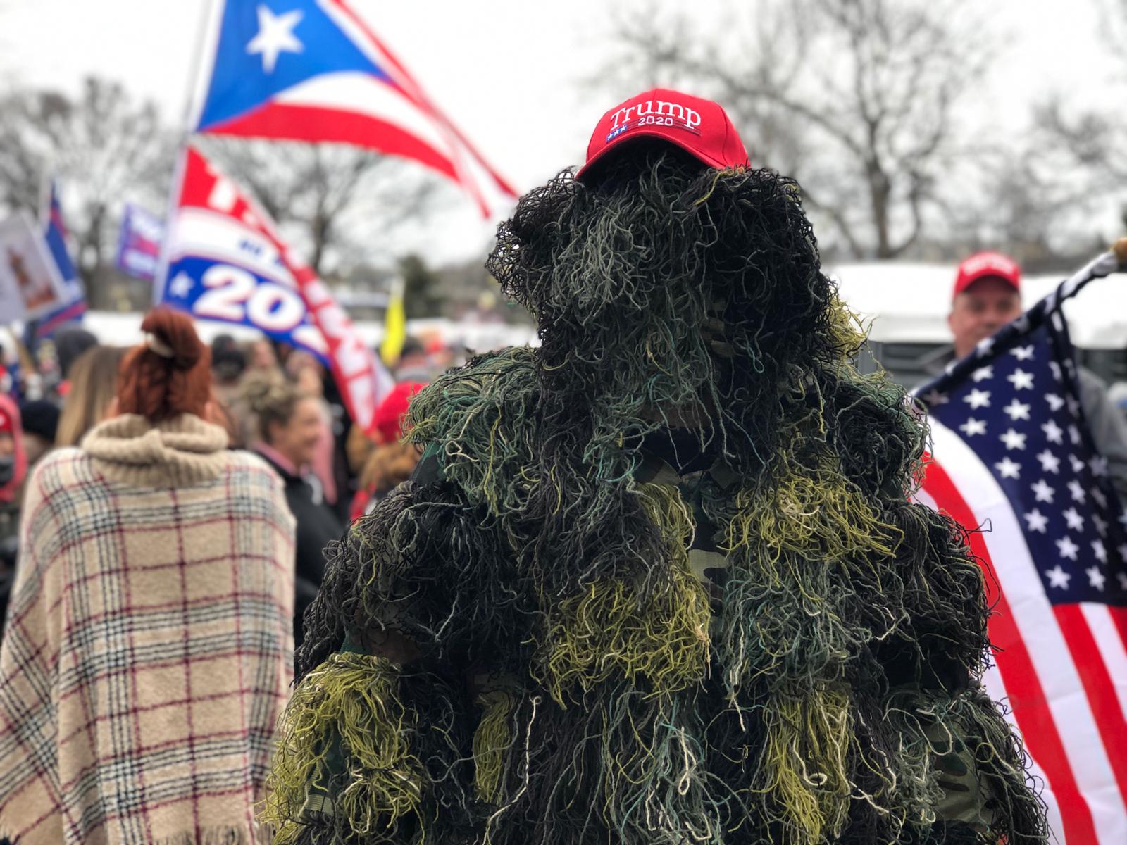 Coby Brown, who drove more than 10 hours from Georgia to D.C., said he came to “stop the steal” from Congress. He wore a tactical vest, walkie-talkie, and camouflage clothing. When asked if he would assault a congressman, Brown said “we’ll have to see how it goes.”