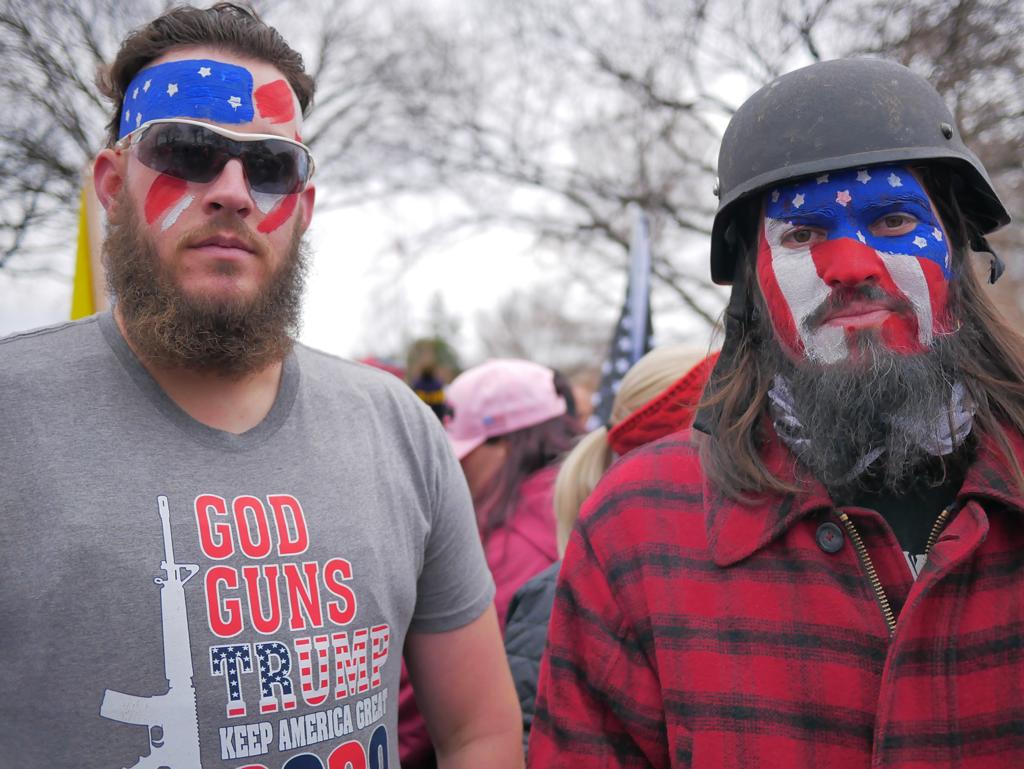 Caleb Kurianski, 39, flew from California to attend Wednesday’s protest, his face painted as an American flag.