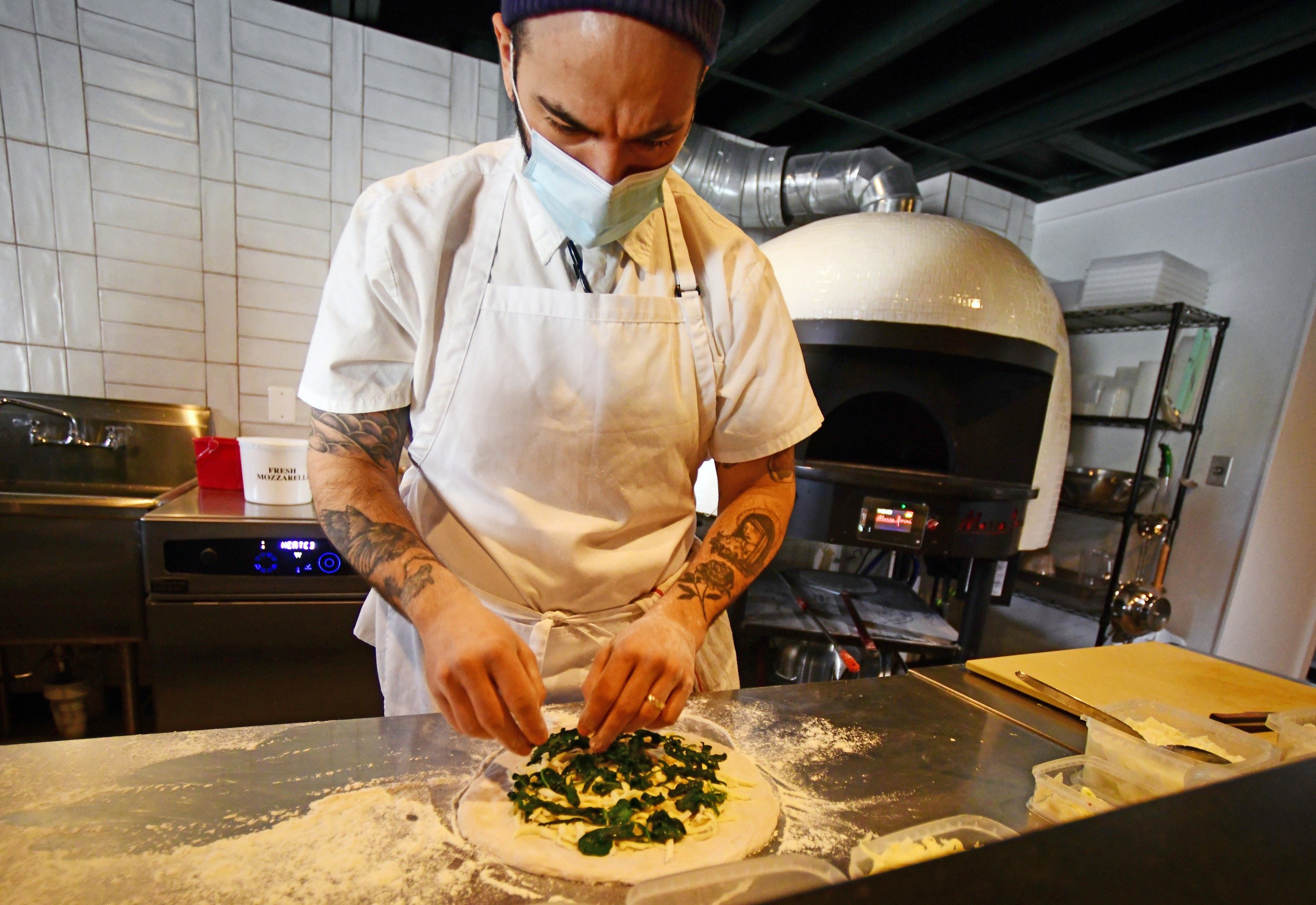 There are a limited number of pizzas available every night, fluctuating based on the amount of dough Mechelis makes and the ingredients they get from their farm partners. (Owners declined to offer a ballpark range for the number of pies they make each night.) To ramp up production, the couple ordered a new mixer to double their output. The demand has been high: They sold out of pizzas on their first night in 20 minutes, and have sold out every night since.