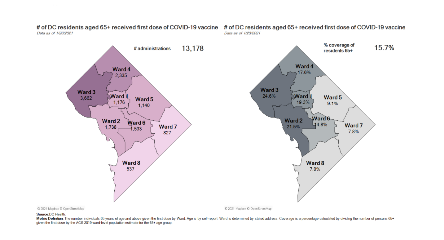 Supply has emerged as the most significant constraint so far during the rollout: The city simply does not have enough vaccines to meet overwhelming demand. Officials, in turn, have been forced to prioritize certain groups and wards, drawing criticism for some of those decisions. As of Jan. 23, the city has administered 51,421 doses of the vaccine — a number that does not cover the 85,000 health care employees who work in the District, let alone the city’s other eligible seniors and essential workers.