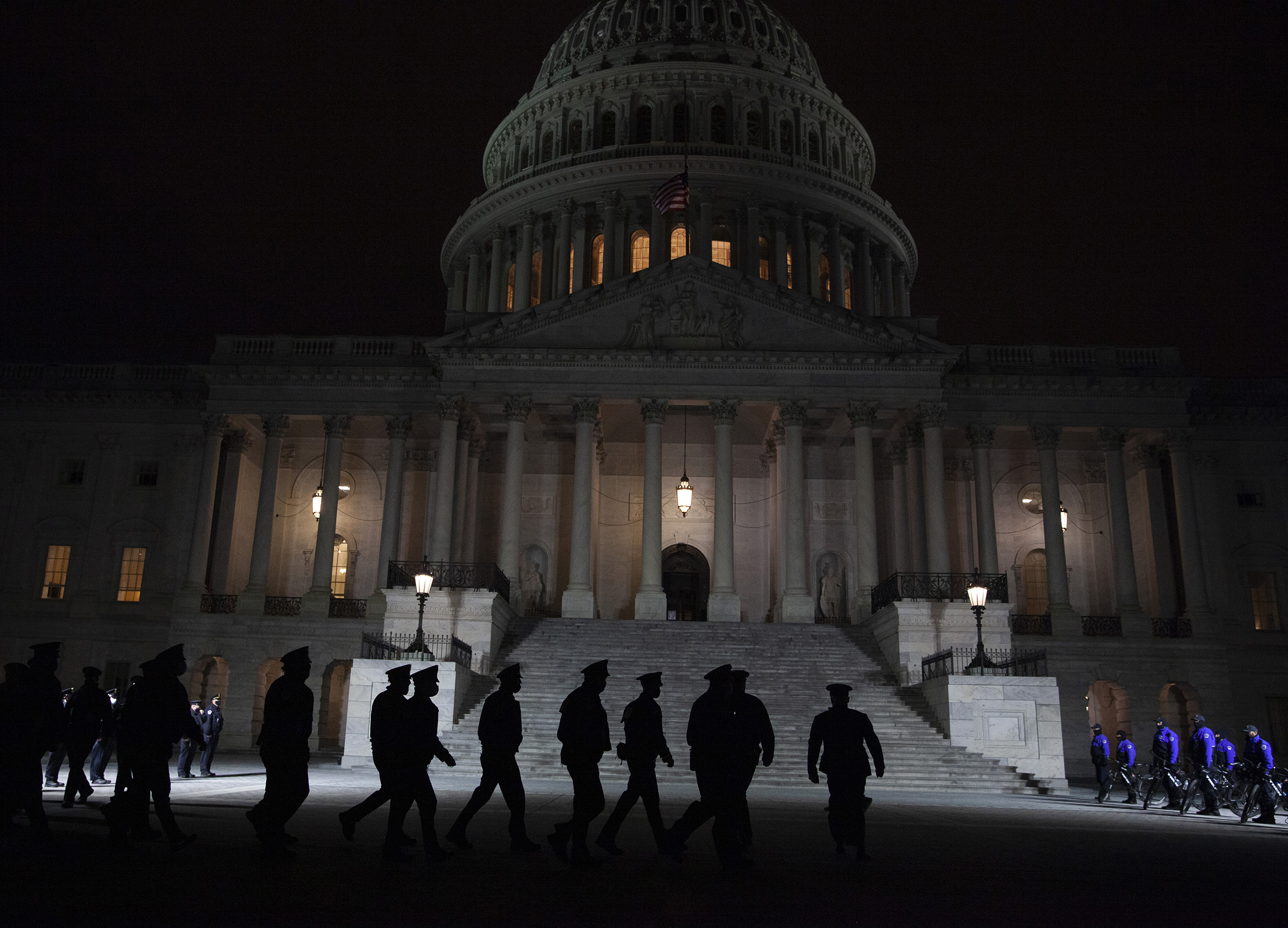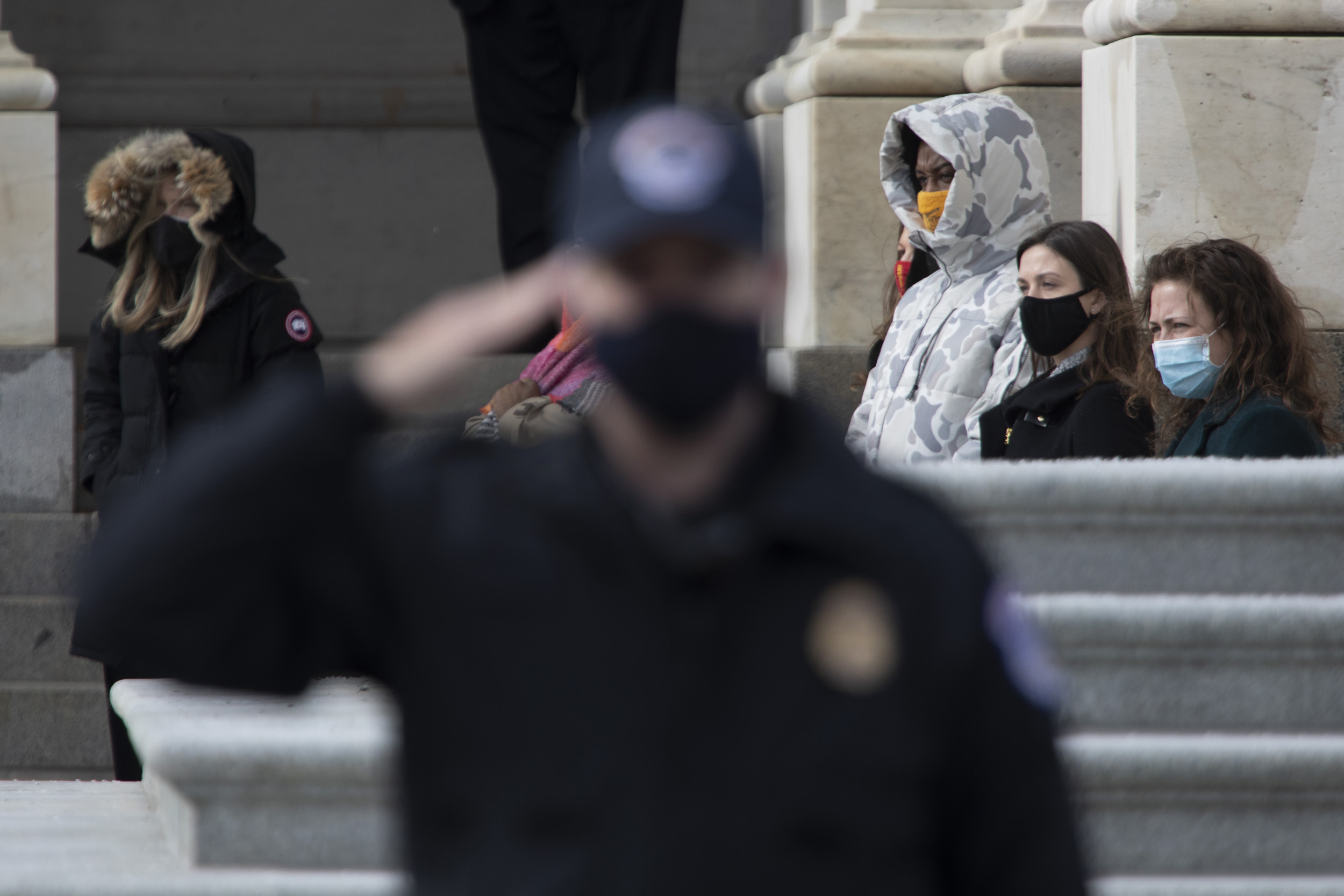 U.S. Capitol Police officers and lawmakers gave Brian Sicknick, the Capitol Police officer who died from injuries sustained during an insurrection on the Capitol, a final tribute at the Capitol Rotunda Wednesday.