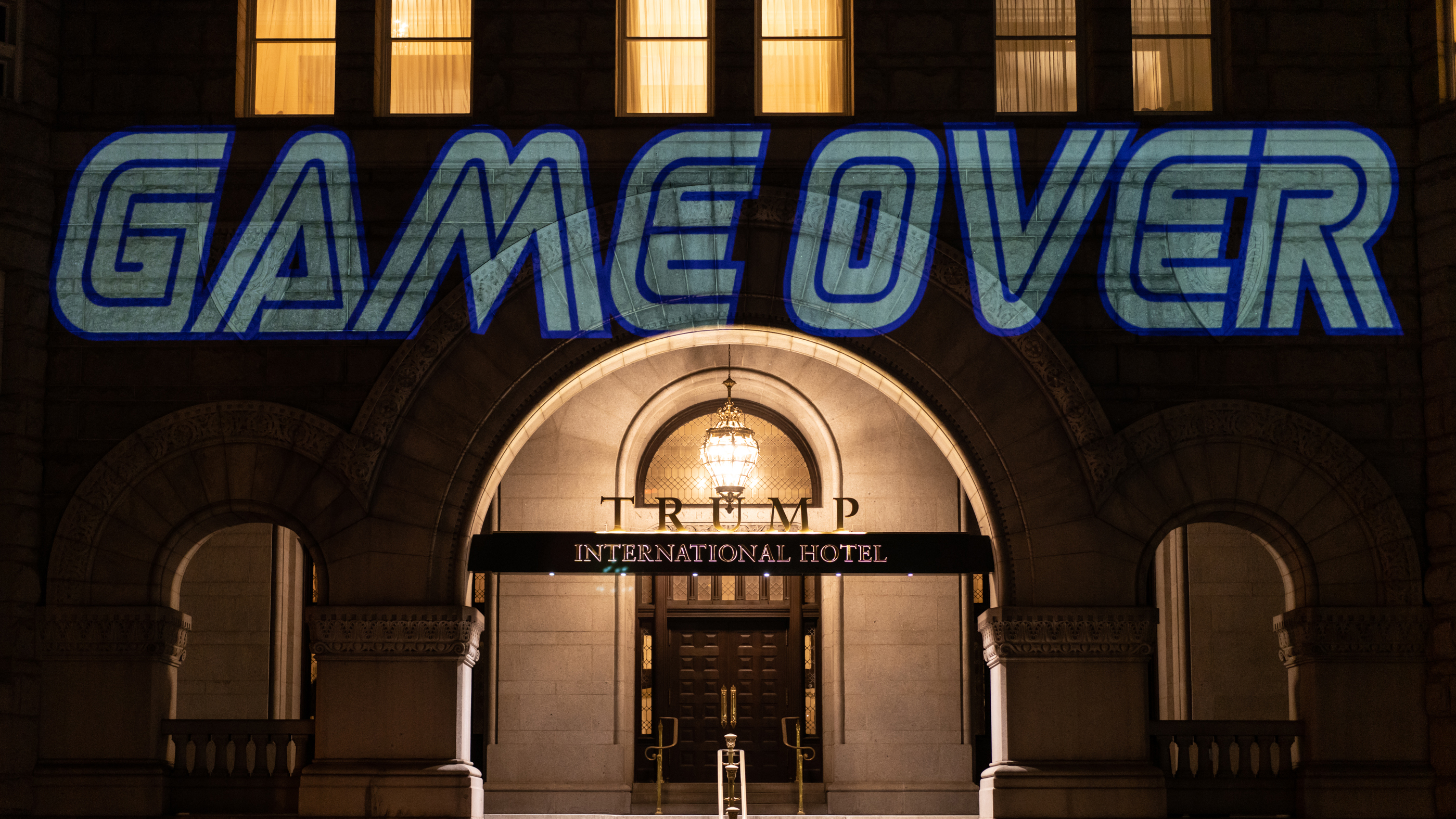 For the past four years, the site has been as much symbol as hotel, a remarkably straightforward physical manifestation of the extreme poles of the Trump presidency. It not only served as a gathering place for MAGA-hat wearing fans and rotating administration officials alike, the steakhouse inside was literally the only D.C. restaurant that Donald Trump dined at over the past four years. On the flip side, the hotel was a magnet for the president’s many local detractors. It was not only a regular stop for sign-wielding protesters, the building became a literal canvas for the projection of anti-Trump messages.