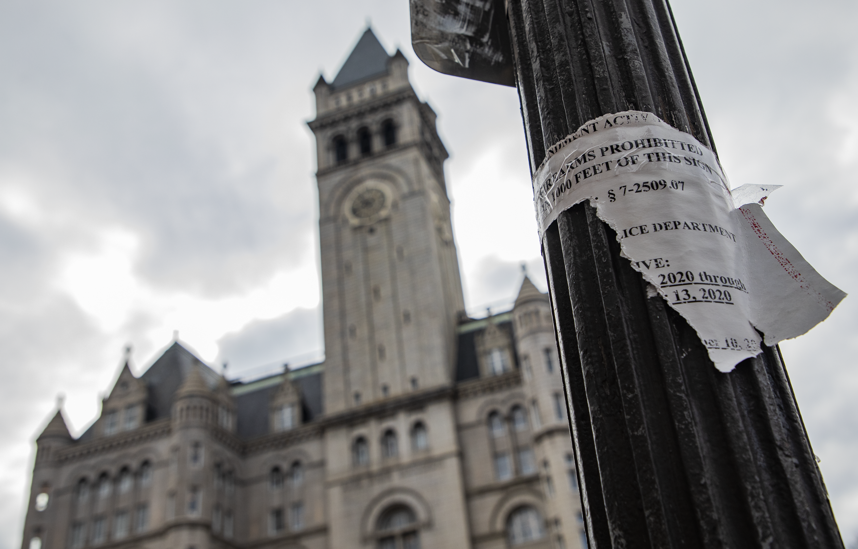 The area outside is a patchwork of jurisdictions –– the General Services Administration controls the plaza, the National Park Service runs the sidewalk, and the D.C. government owns the street. Around the time of the 2016 election, security officials closed off the sidewalk and plaza, and demonstrators were told they needed permission from the Trump Organization to protest there.